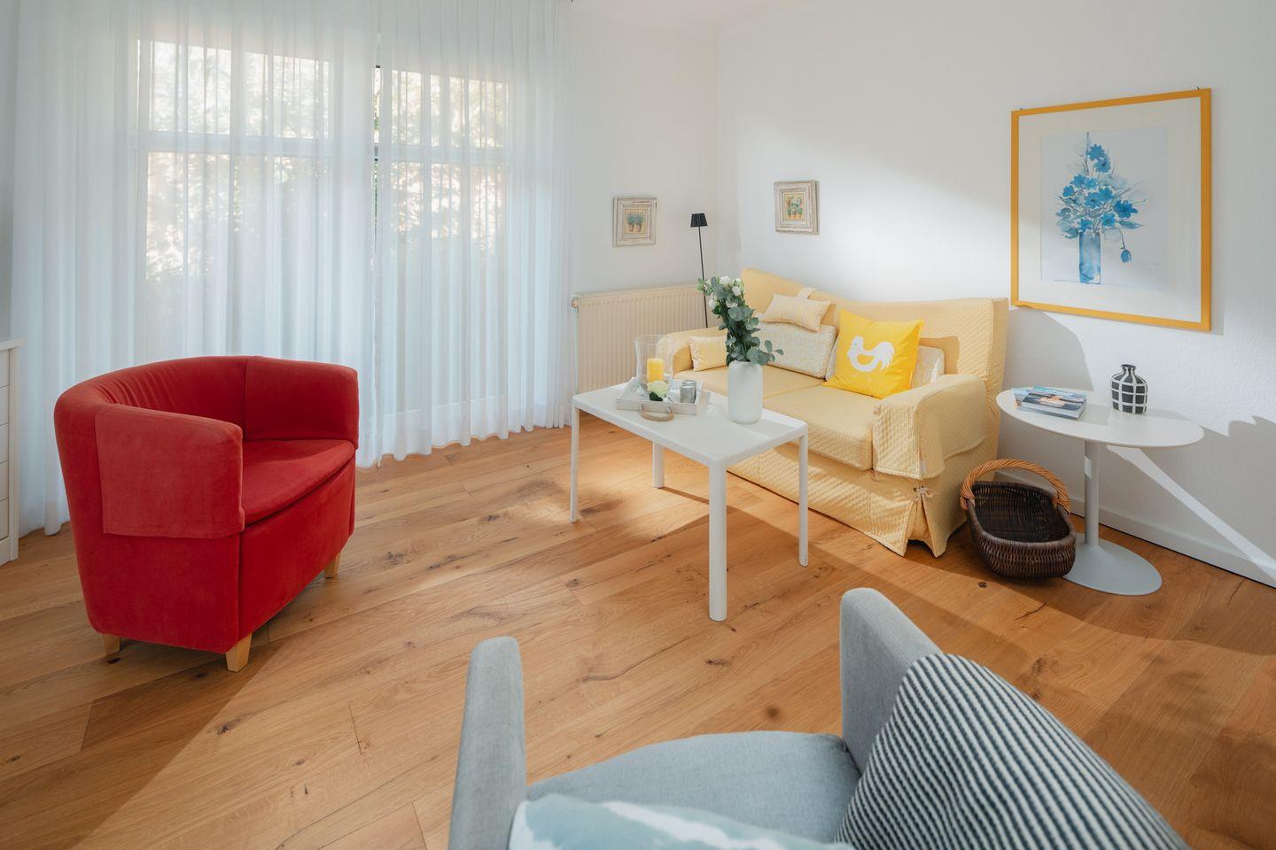 Hier bestimmt der gepflegte Kurpark die Umgebung. Diese sonnige freundliche Wohnung ist stufenlos erreichbar wird besonders gerne von älteren Gästen gebucht"