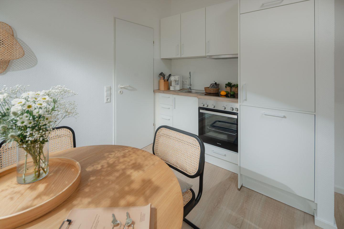 Das Tageslichtbad ist mit einem Waschbecken, einem WC sowie einer Dusche ausgestattet. Im gemütlichen Wohnzimmer mit offener Küche erwartet Sie ein Schlafsofa der Größe 160x200cm, welches auch als Schlafmöglichkeit dienen kann. Die Küche ist umfassend ausgestattet mit Kühlschrank, Gefrierfach, Backofen, Ceranfeld, Spülmaschine, Kaffeemaschine und einer Nespresso-Kapselmaschine. Bei Bedarf stellen wir Ihnen gerne eine Mikrowelle zur Verfügung.