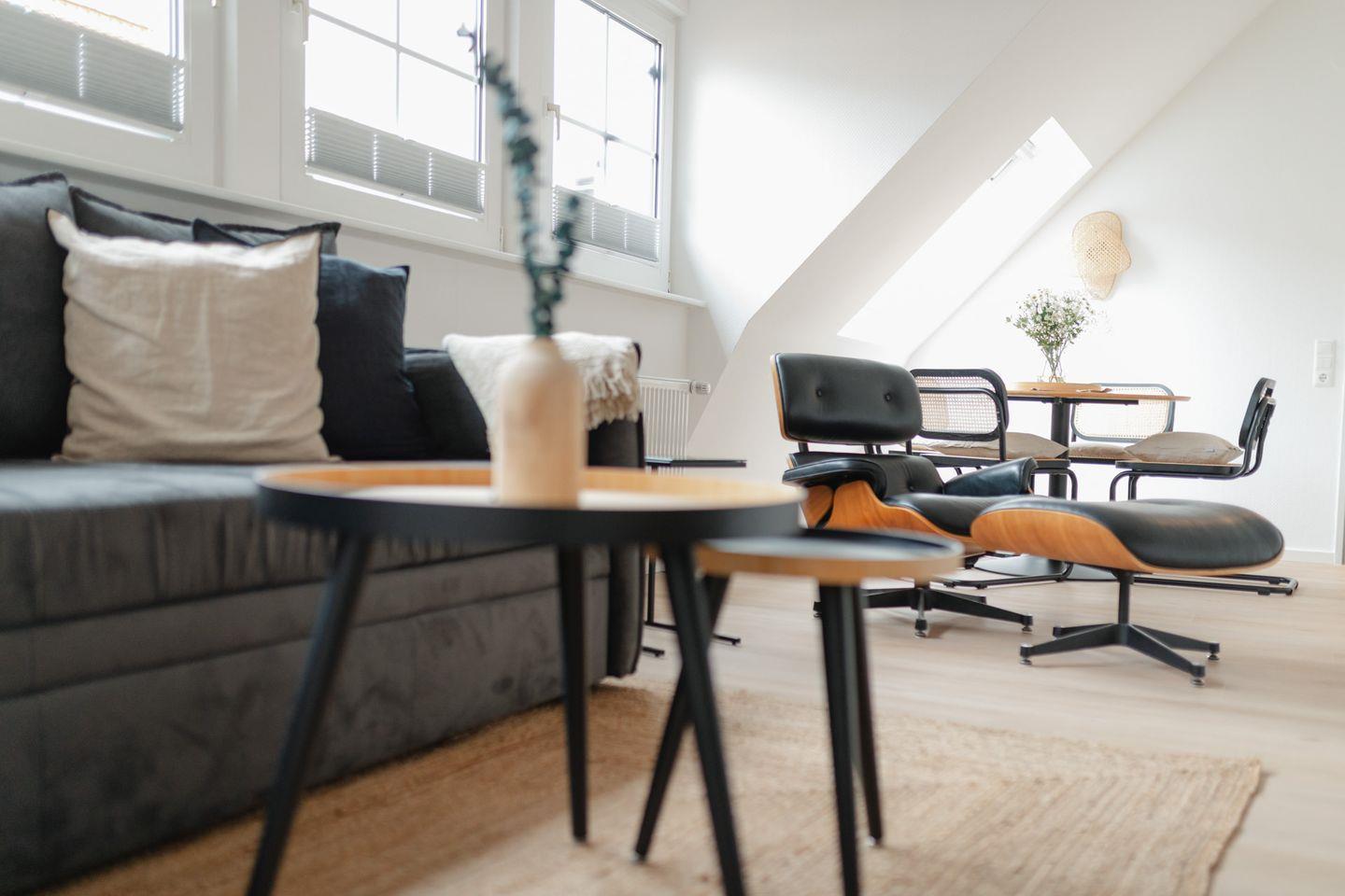 Moderne Ferienwohnung Bismarck B03 auf Norderney, nur 50 m vom Strand und Zentrum entfernt, ideal für Familien und Paare.