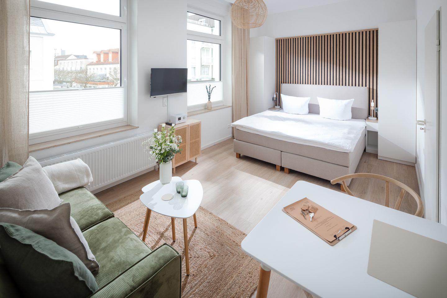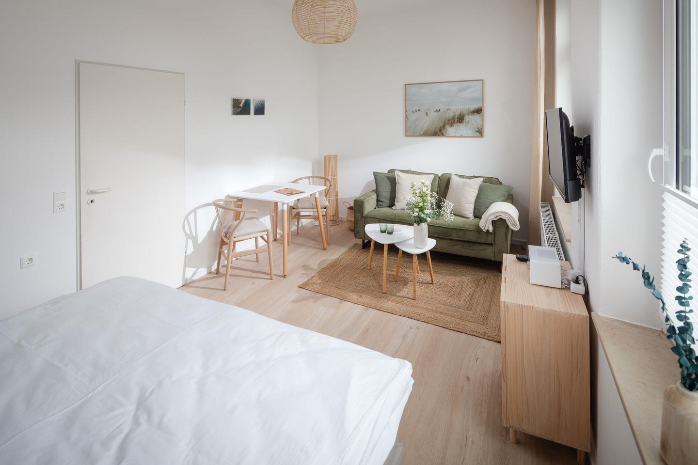 Das Appartment ist komplett ausgestattet und bietet alles, was Sie für einen angenehmen Aufenthalt benötigen. Für einen traumhaften Schlaf sorgt das Boxspringbett der Größe 180x200cm.