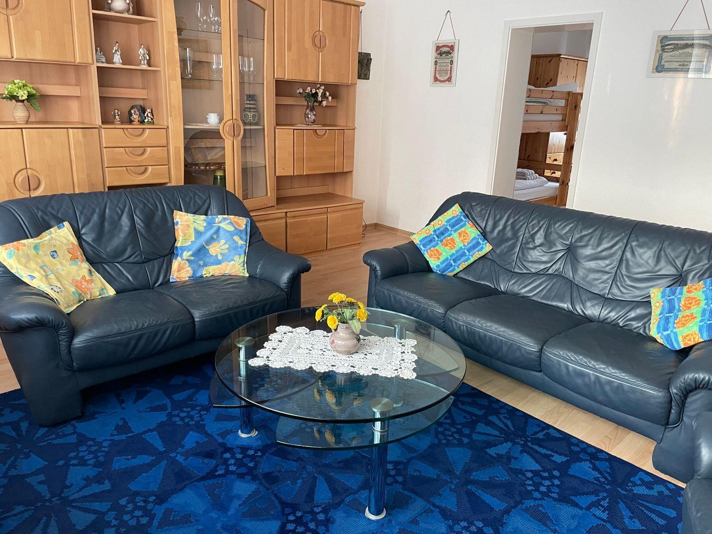 Kinderzimmer mit 2 Etagenbetten, ein großes Wohnzimmer mit Sitzgruppe und