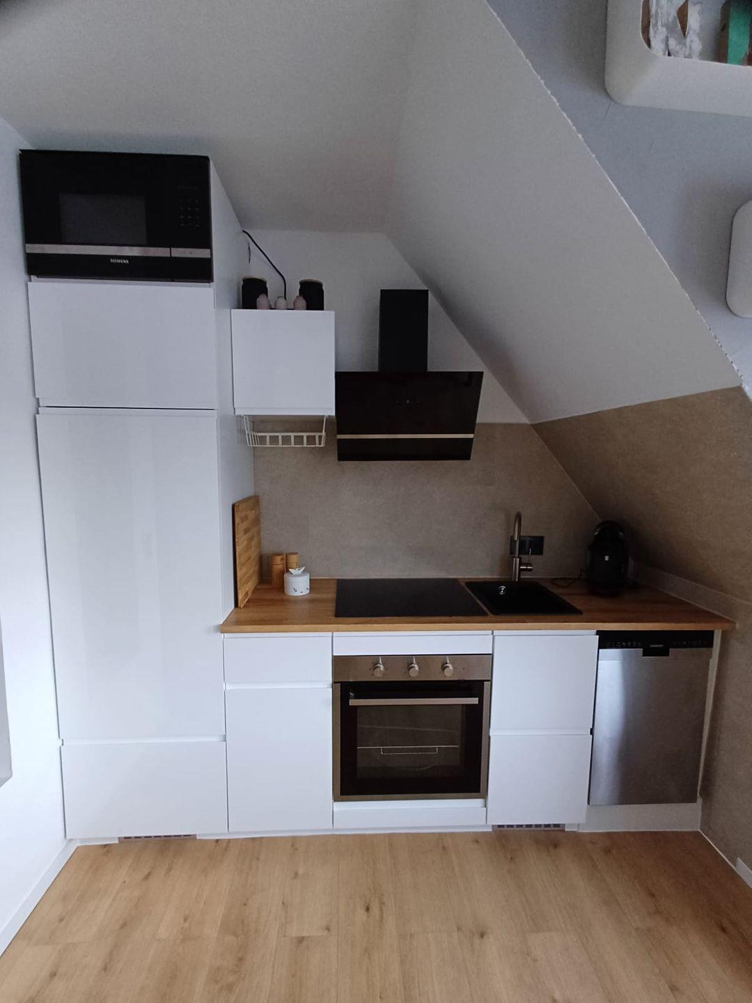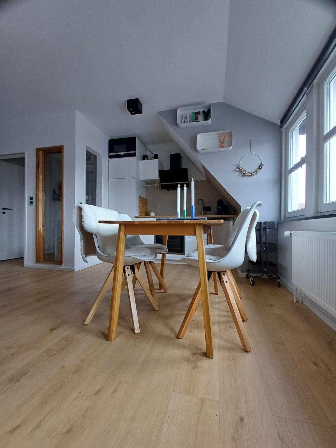Nichtraucher-Appartement ist ca. 40 qm groß und liegt im Dachgeschoss. Es ist für maximal 3 Erwachsene und ein Kind bewohnbar oder 2 Erwachsene und 2 Kinder. Für unsere kleinen Gäste stehen ein Reisebett inkl. Bettwäsche, ein