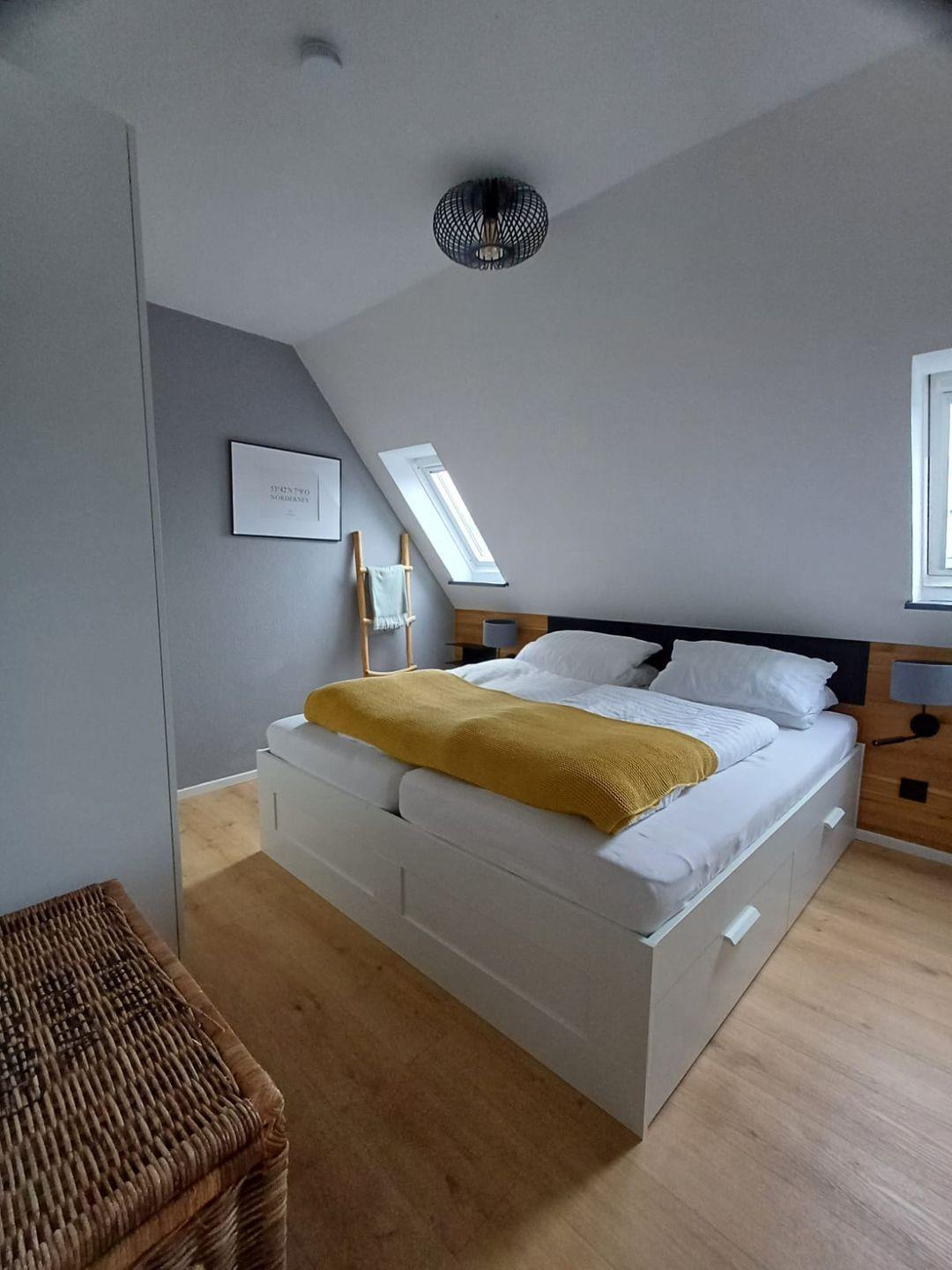 angrenzenden Badehaus als auch der Weststrand sind jeweils ca. nur 200 m entfernt. Die Wohnung ist nach dem DTV mit 3 Sternen klassifiziert. Im Schlafzimmer befinden sich ein Doppelbett (1,80x2,00m) und ein geräumiger Kleiderschrank. Das Wohnzimmer mit integrierter Küchenzeile bietet eine weitere Schlafmöglichkeit für zwei Personen auf dem ausziehbaren Schlafsofa (Liegefläche 1,40x2,00m). Die Küche ist mit allen nötigen Utensilien wie