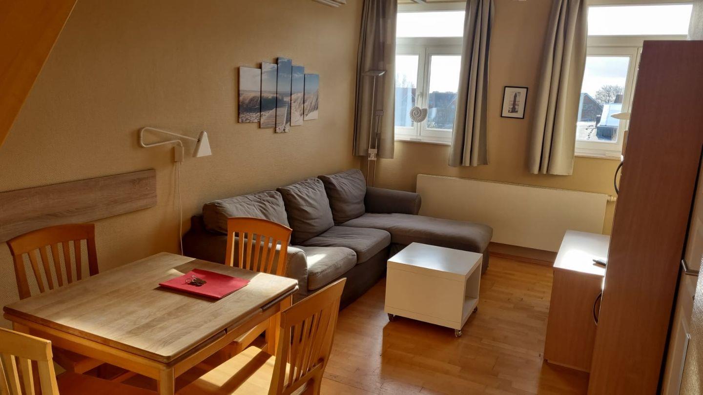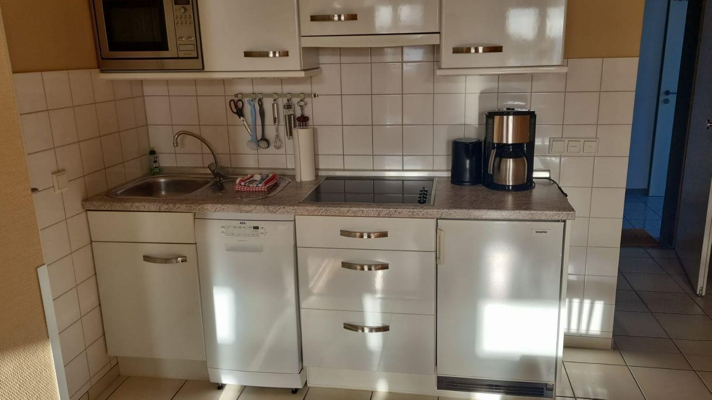 Moderne Ferienwohnung in Norderney, direkt am Kurplatz, mit Aufzug, zwei Schlafzimmern und moderner Küche.