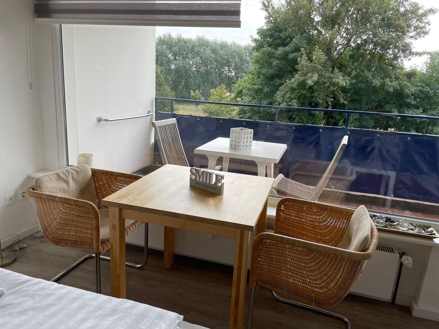 Gemütliche Ferienwohnung auf Norderney mit Südbalkon und Parkblick, ideal für erholsame Tage zu zweit.