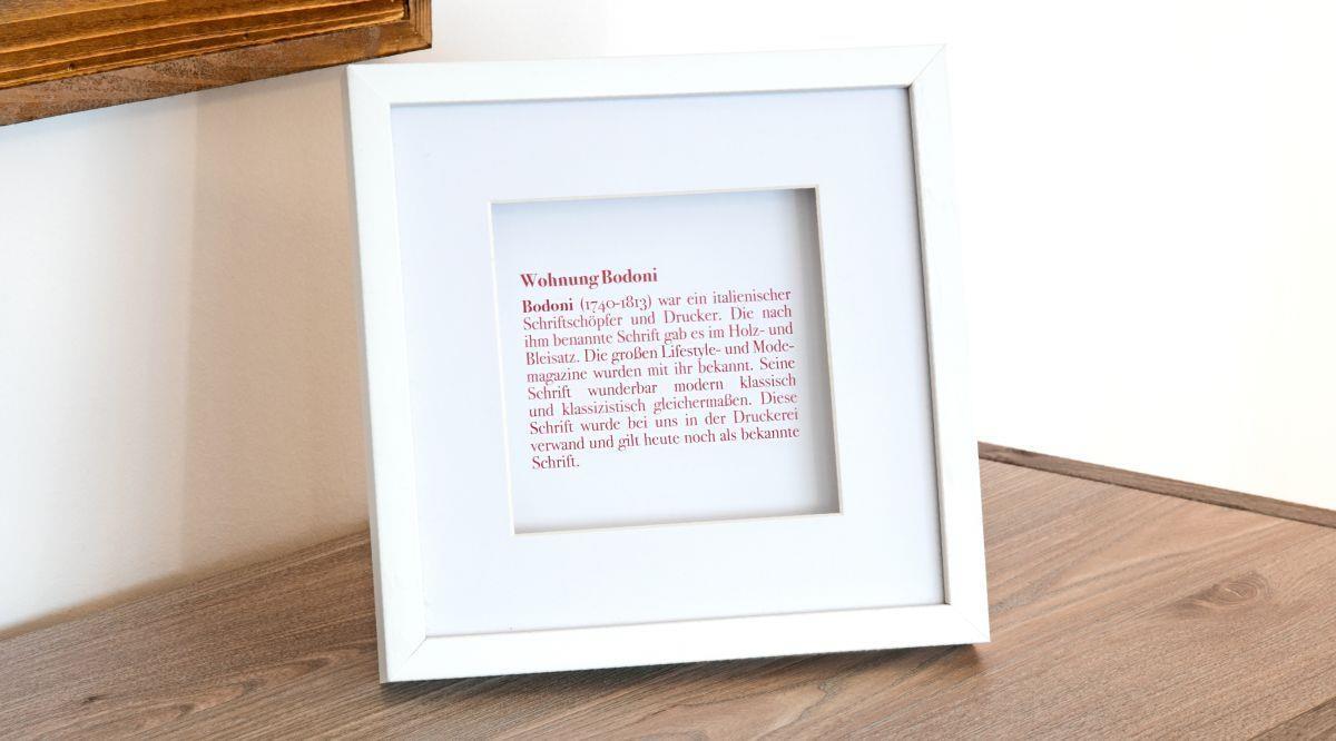 Wenn auch heute in der ehemaligen Druckerei Otto Freund in der Poststraße 3 die Maschinen nicht mehr stehen, ist dieser Ort eine Heimat für die hohe Kunst des Druckhandwerks. Eigenschaften, die den Druckbetrieb überdauert haben und sich in den Appartments in der Alten Druckerei wider-spiegeln. Die Namen der Appartments haben wir in Bezug auf das Druckhandwerk gewählt.