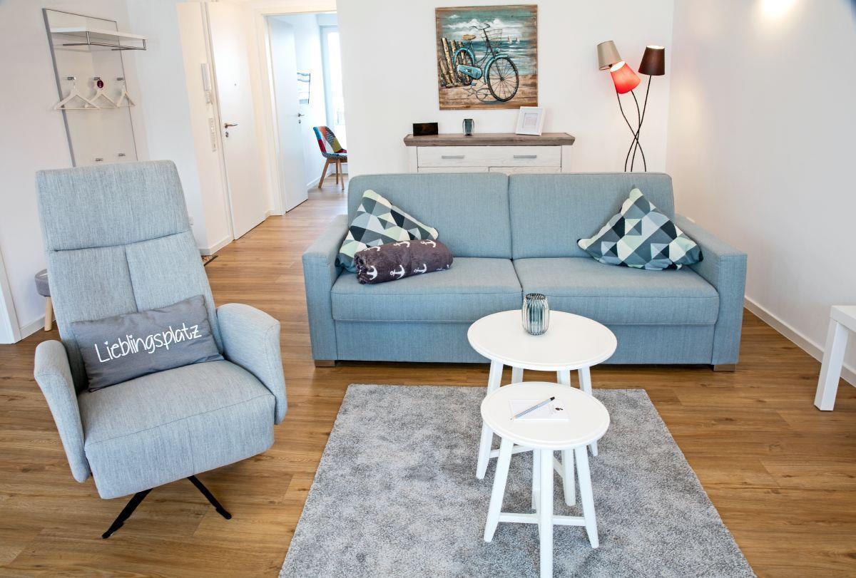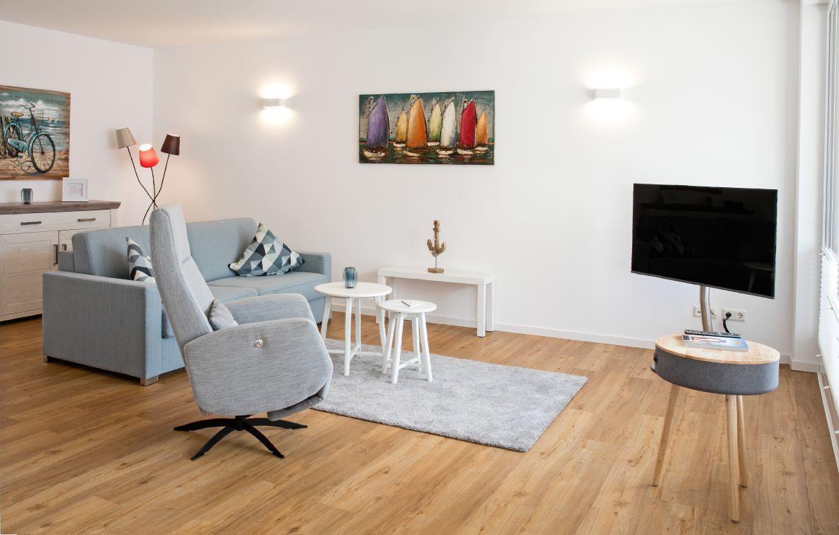 Moderne Nichtraucherferienwohnung "Bodoni" in zentraler Lage auf Norderney mit Loggia und Blick auf die Fußgängerzone.