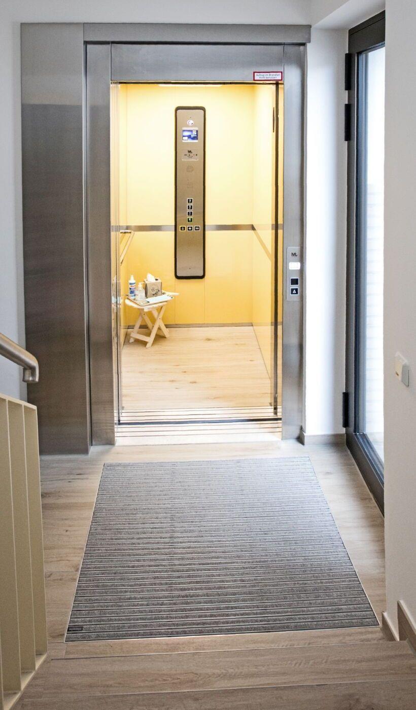 Fahrstuhl bringt Sie bequem in die oberen Etagen. Restaurants, Cafe`s und