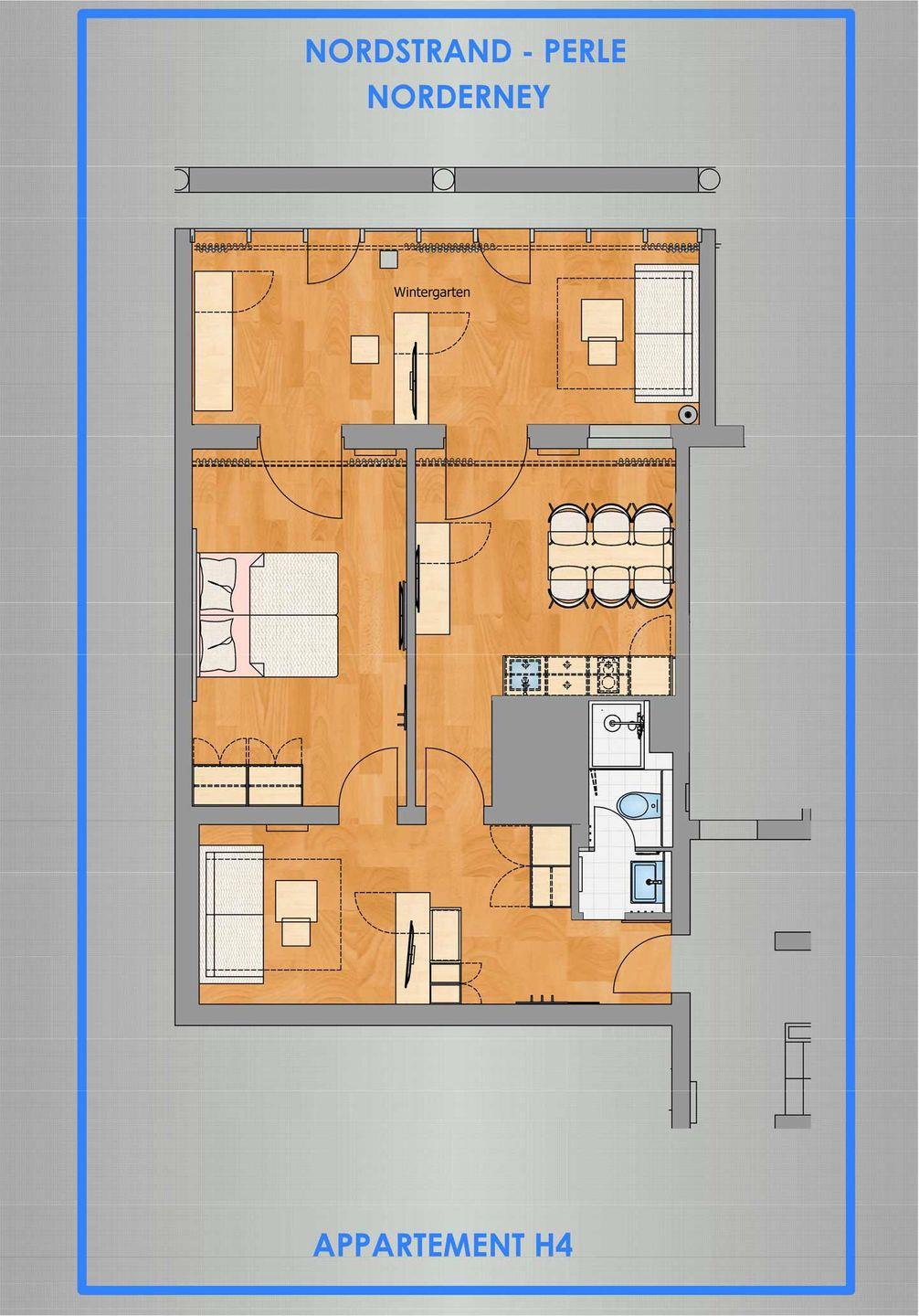 Modernes Apartment Nordstrandperle H4 auf Norderney nahe Promenade und Meer mit hochwertiger Ausstattung und ruhiger Lage.