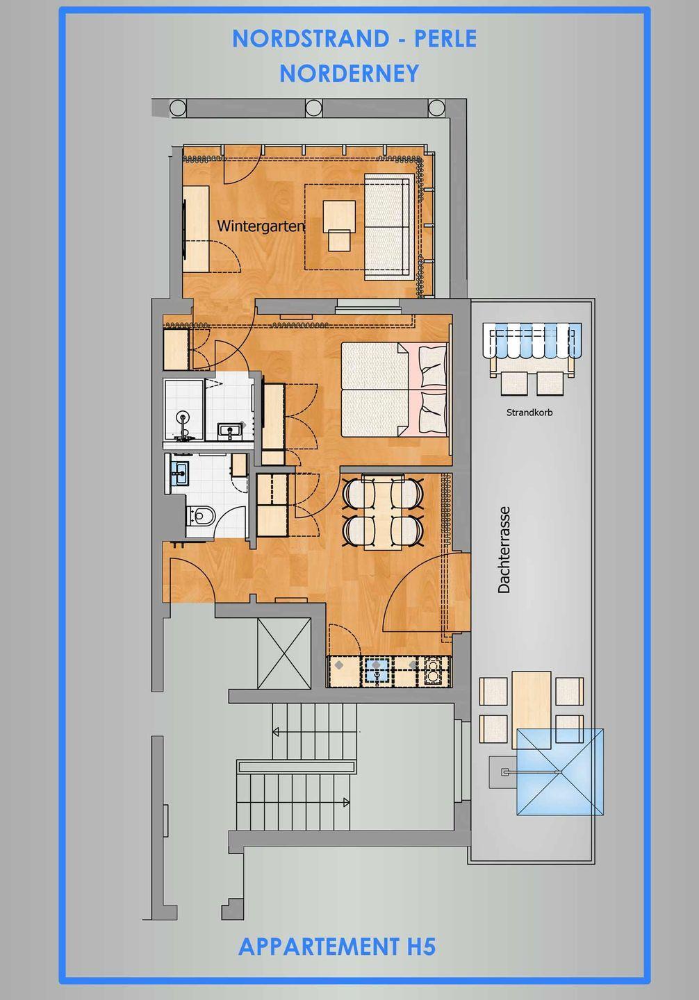 Modernes Apartment H5 in der Nordstrandperle auf Norderney, nahe Meer und Innenstadt, mit stilvoller Ausstattung und ruhiger Lage.
