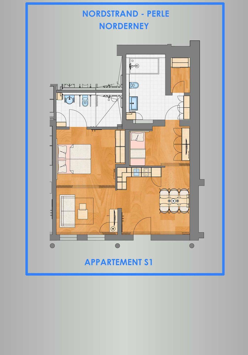 Modernes Apartment S1 in der Nordstrandperle auf Norderney mit Meerblick und barrierefreiem Zugang.
