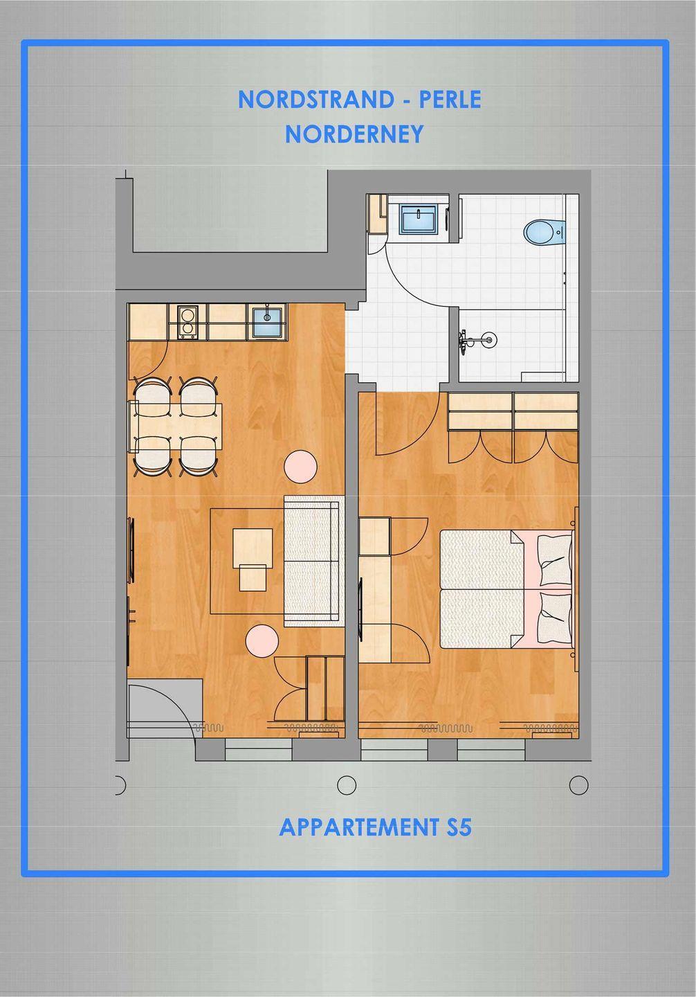 Modernes Apartment S5 in der Nordstrandperle auf Norderney mit Top-Lage nahe Meer und Innenstadt.