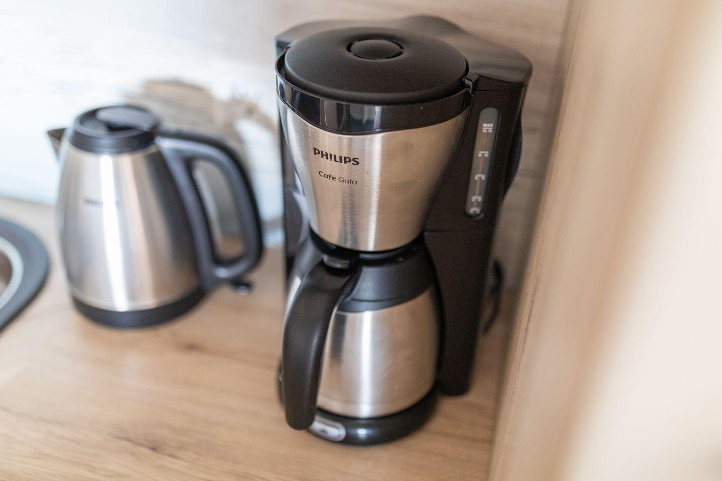 Für maximalen Komfort während Ihres Aufenthalts bieten wir eine Waschmaschine und einen Trockner im Haus sowie einen Glasfaser-Internetanschluss. In unserer voll ausgestatteten Küche mit Backofen, Mikrowelle, Ceranfeld, Kühlschrank mit Gefrierfach, Kaffeemaschine und Nespressomaschine können Sie sich ganz nach Ihren Wünschen selbst versorgen.