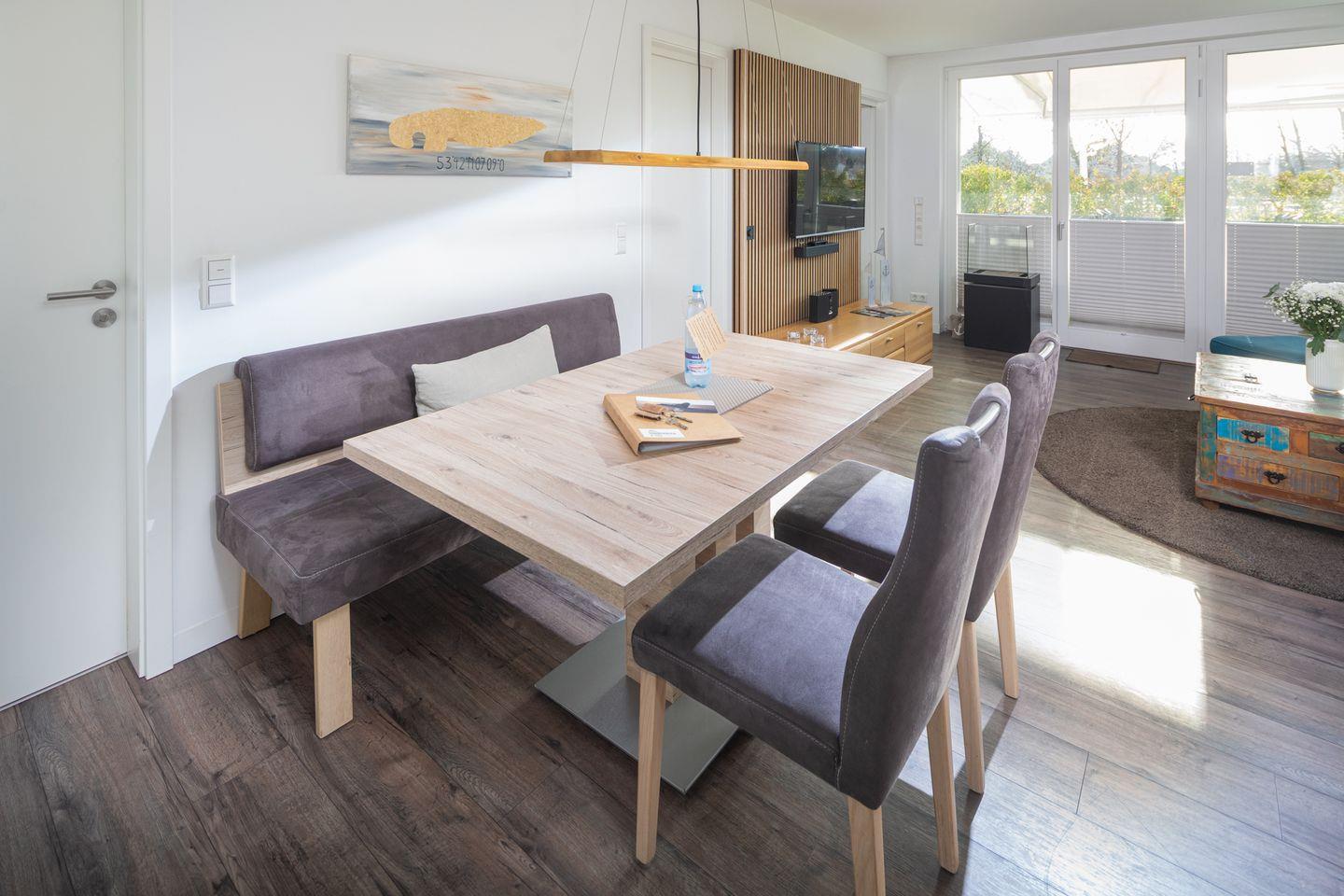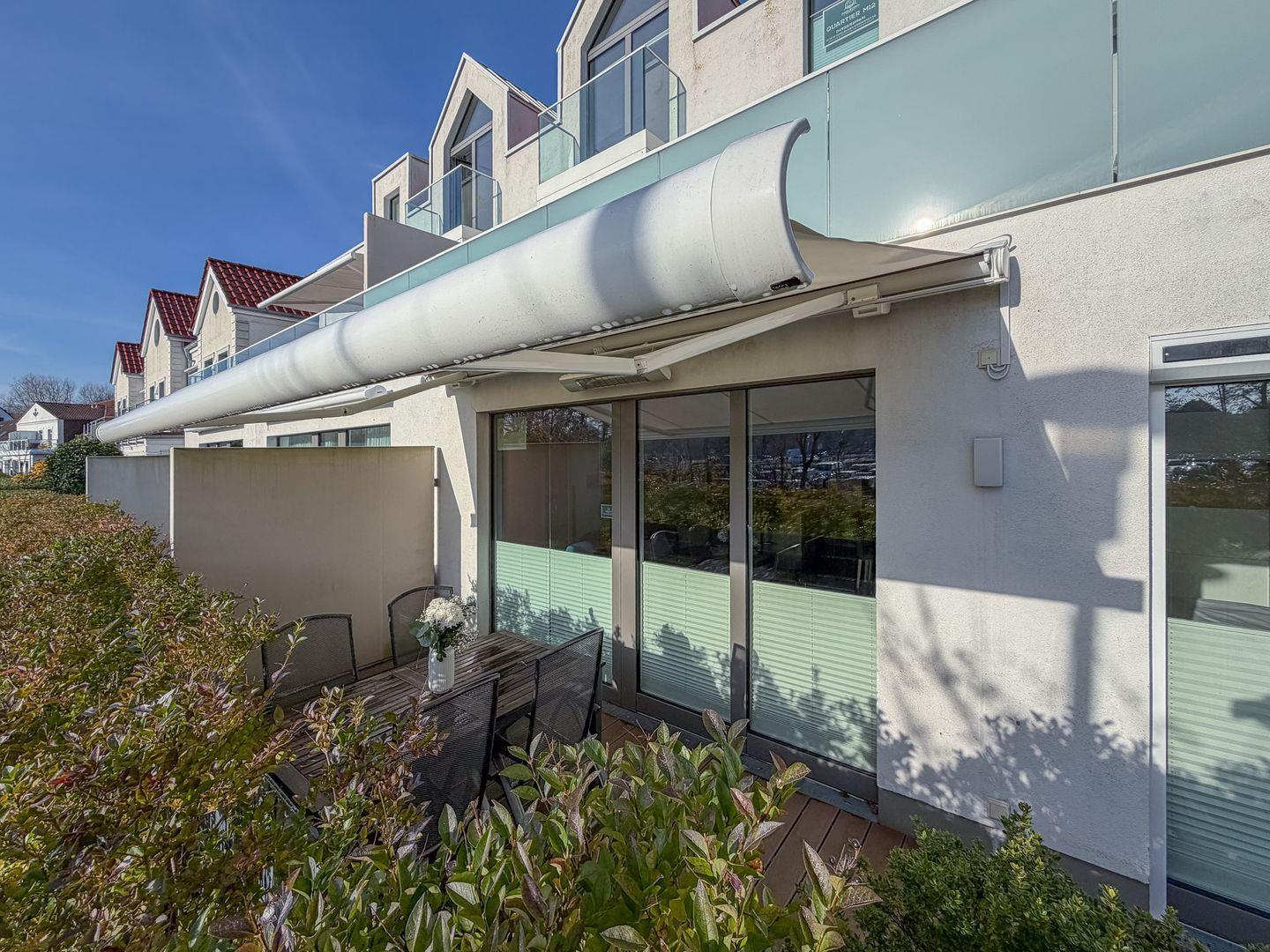 Genießen Sie entspannte Abende auf unserer Terrasse unter unserer elektrischen Markise mit Windwächter, die automatisch einfährt, wenn der Wind zu stark wird. Zudem haben Sie die Möglichkeit E-Bikes auf der abgeschlossenen Terrasse aufzuladen und abzustellen.