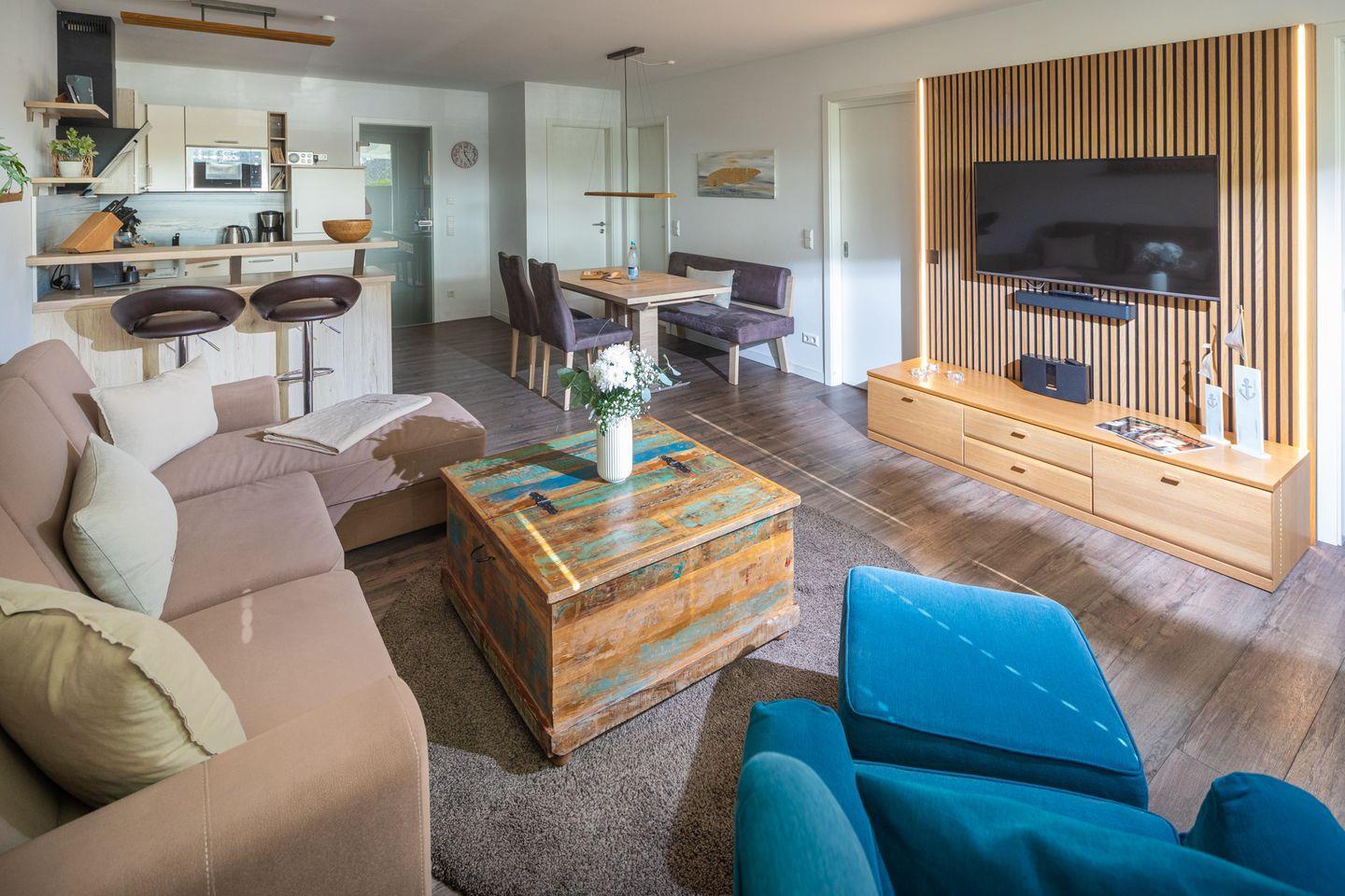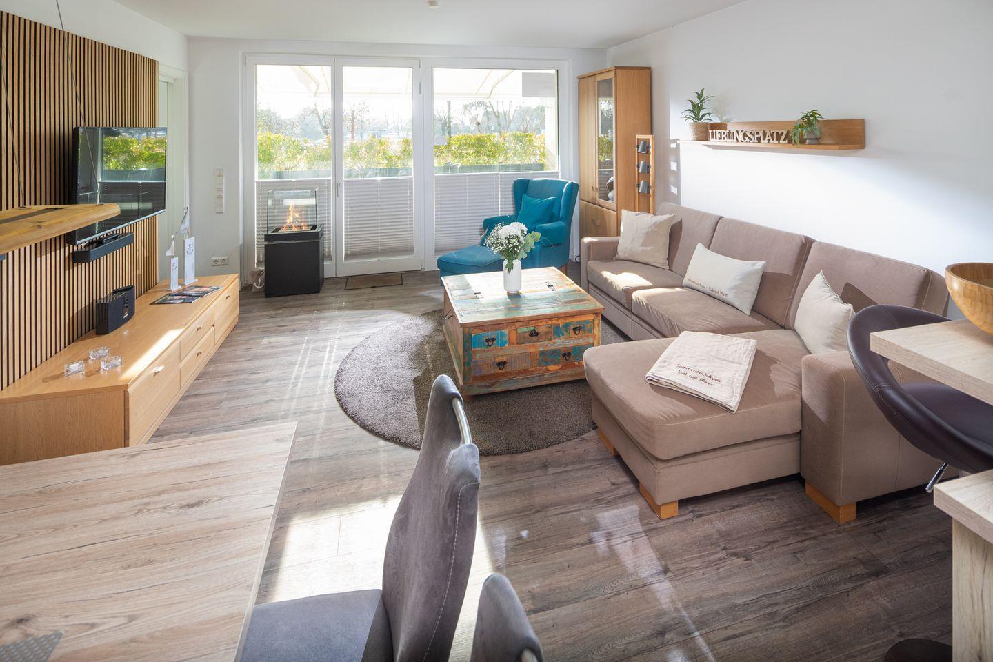 Gemütliche Ferienwohnung Sommerdeich4you am Kurpark in Norderney mit Terrasse, Kamin und Glasfaser-Internet für erholsame Urlaubstage.