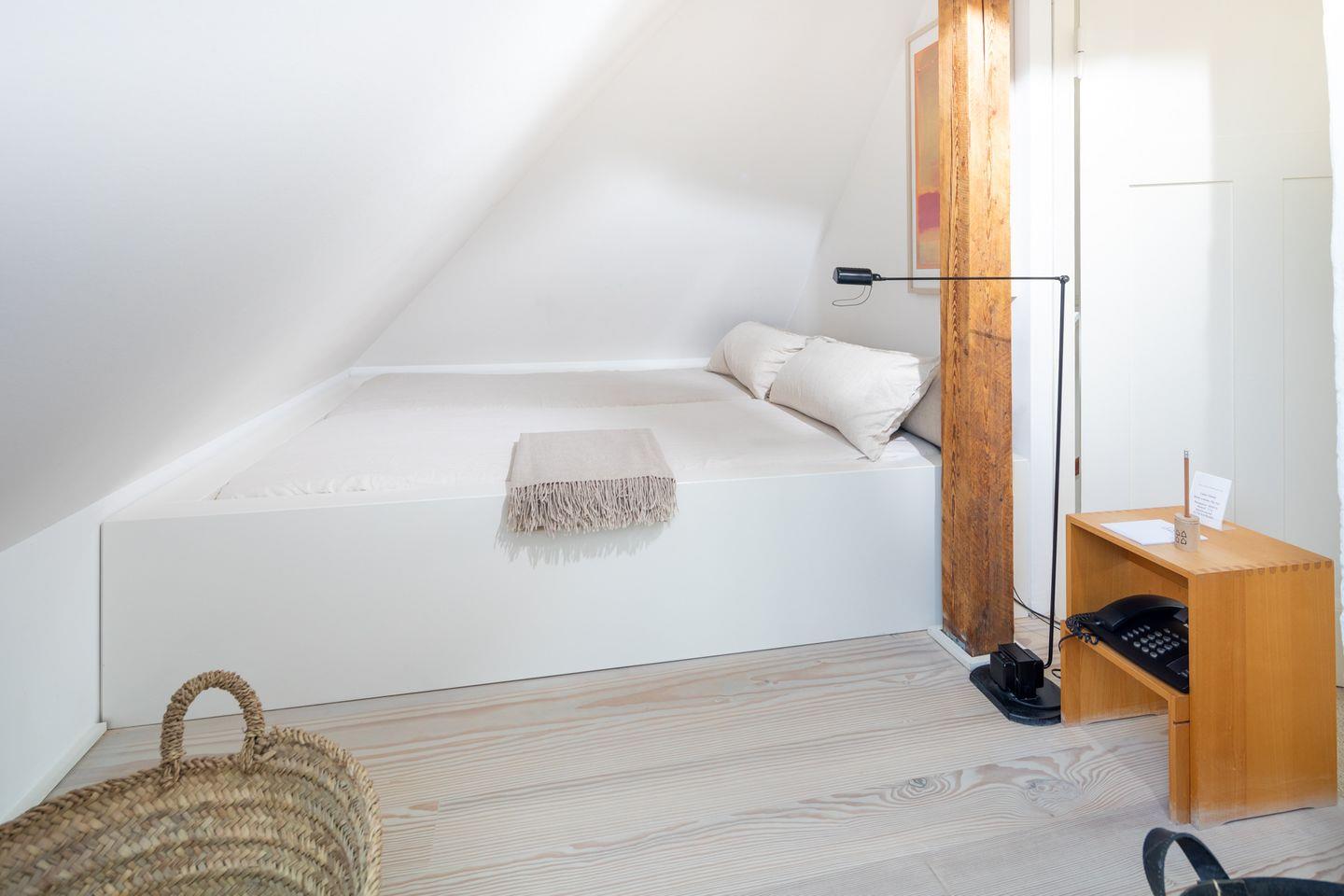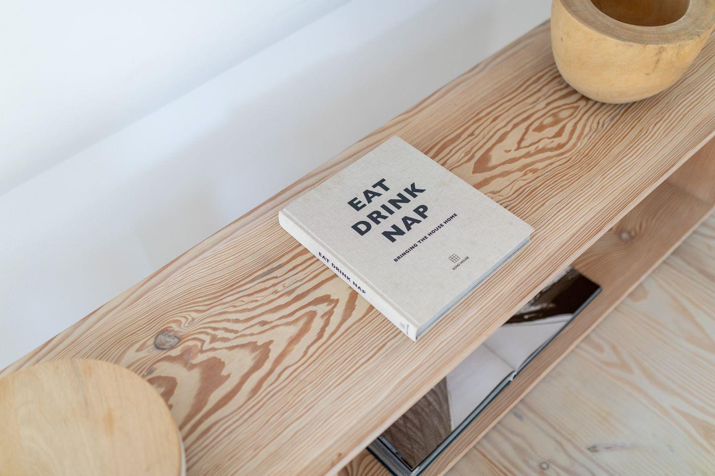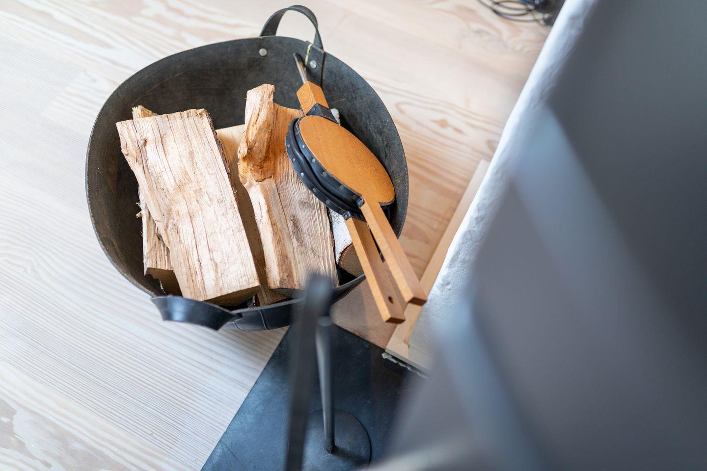 Der großzügige Wohnbereich im Obergeschoss lädt zum Verweilen ein und verfügt über eine offene Küche, einen Essbereich und einen einladenden Kamin, der für wohlige Atmosphäre sorgt. Eine zusätzliche Nische mit einem weiteren Bett bietet flexiblen Schlafplatz für weitere Gäste.