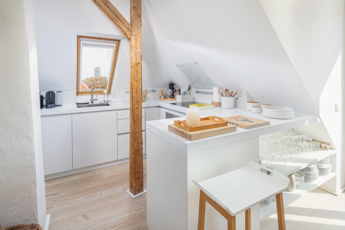Die hochwertige und dennoch gemütliche Einrichtung schafft eine warme und einladende Atmosphäre, in der Sie sich sofort wie zu Hause fühlen werden. Genießen Sie entspannte Stunden auf der Dachterrasse, die einen wunderbaren Ausblick bietet und sich perfekt für gesellige Abende im Freien eignet.