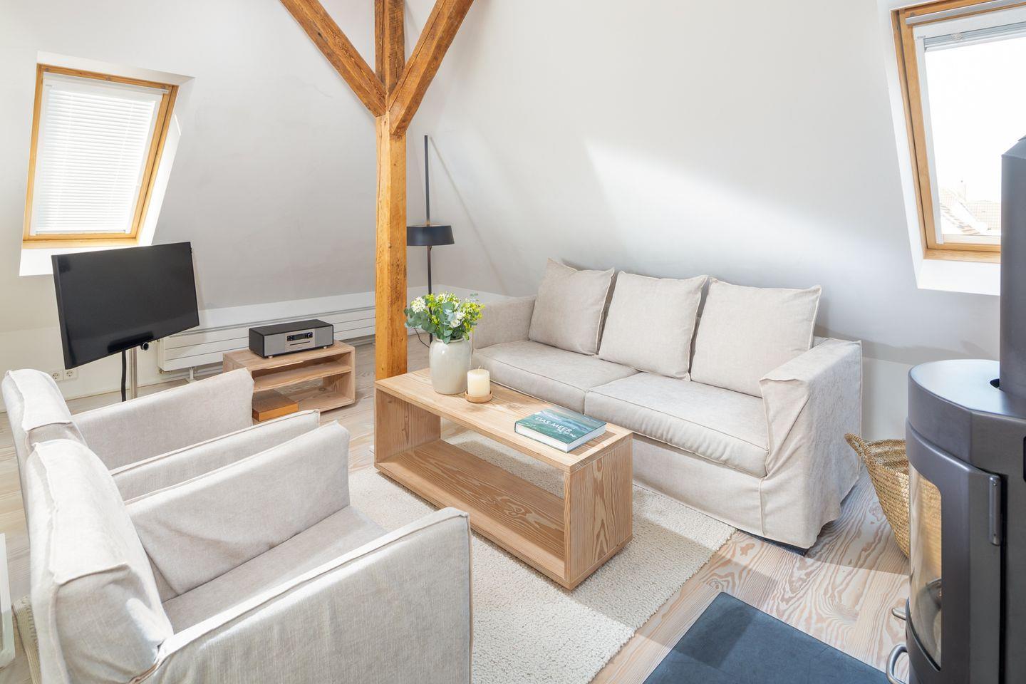 Moderne Ferienwohnung mit Kamin, Dachterrasse und Sauna nahe Strand in Norderney.