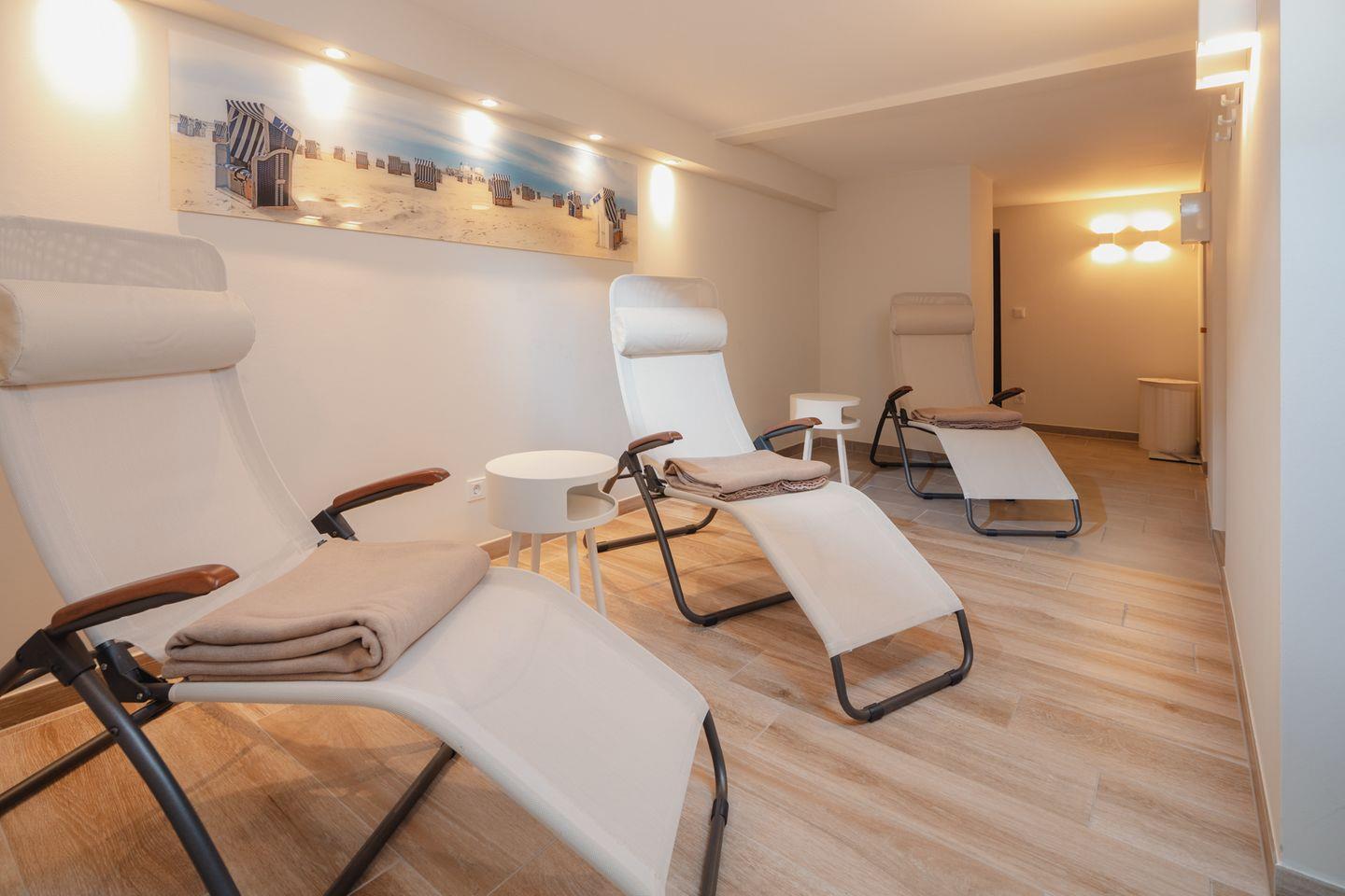 Zusätzliche Entspannung finden Sie im 2023 komplett renovierten Sauna-Bereich des Hauses (Münzgeld-Einwurf).