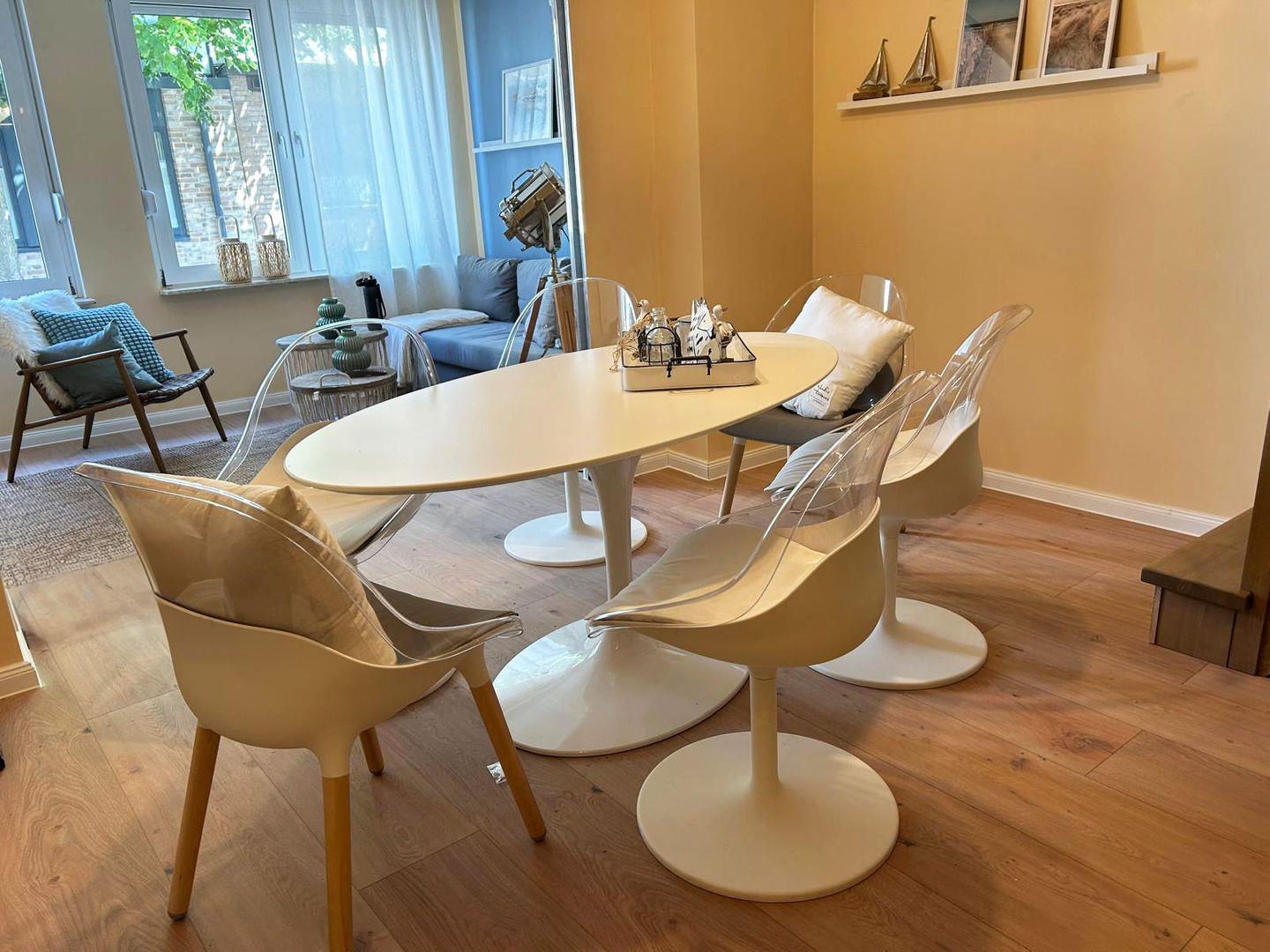 Das Wohnzimmer lädt zum Verweilen ein, mit einer gemütlichen Schlafcouch (1,70 x 2,00 m) für zusätzliche Gäste. Die Wohnung wurde hochwertig ausgestattet und neu saniert, um Ihnen einen luxuriösen Aufenthalt zu bieten.