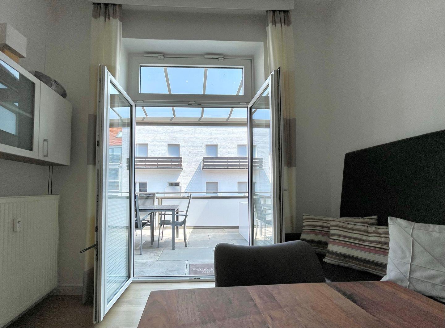 Moderne 3-Zimmer-Ferienwohnung mit großem Balkon, zentral auf Norderney, ideal für Familien und Gruppen.