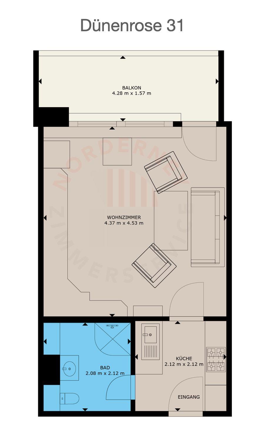 Gemütliches Apartment mit Schwimmbad, Balkon und Strandnähe auf Norderney – ideal für 1-2 Personen.