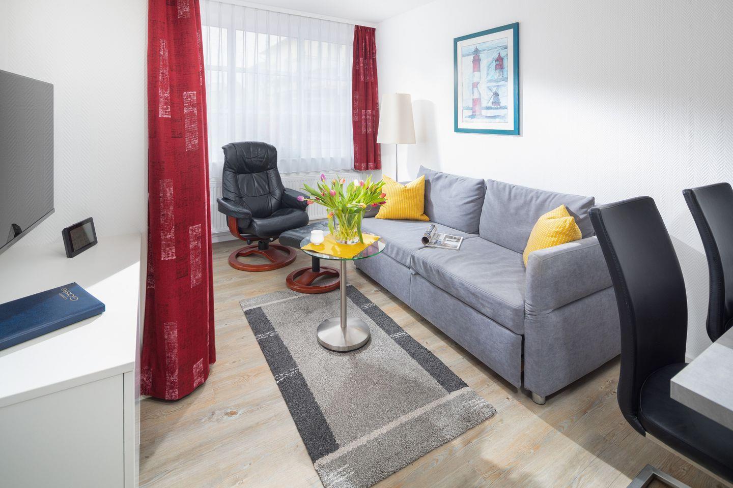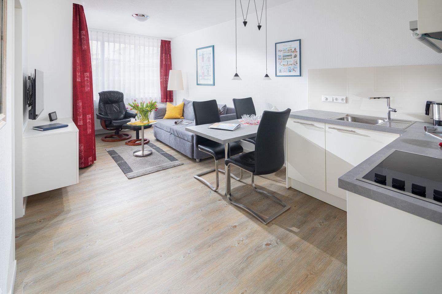 Moderne 2-Zimmer-Wohnung mit Terrasse nahe Nordstrand auf Norderney für entspannte Urlaubstage zu zweit.