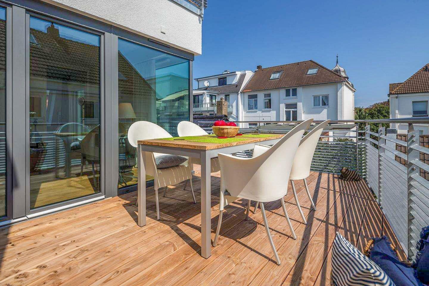 Luxuriöse Captain’s Suite 7 mit Dachterrasse und Sauna im Herzen von Norderney, nur 100 m vom Strand entfernt.