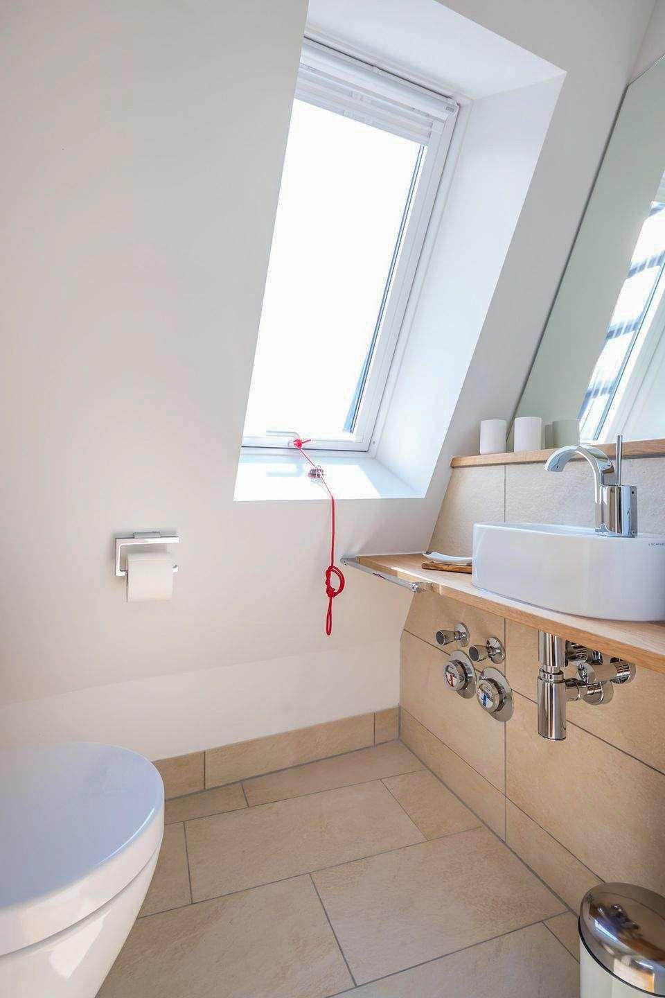 Komfort wird hier großgeschrieben: Die Fußbodenheizung sorgt für wohlige Wärme, und das Badezimmer mit bodengleicher Dusche bietet ein kleines Wellnesserlebnis. Haartrockner, Kosmetikspiegel und ein zusätzliches Gäste-WC machen den Aufenthalt noch angenehmer.