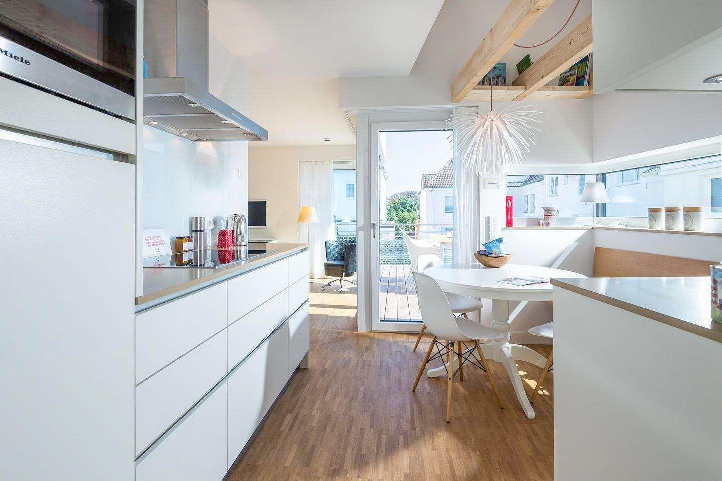 In der modernen Küche findest du alles, was du brauchst: Herd, Backofen, Mikrowelle, Geschirrspüler, Kühlschrank mit Gefrierfach, Kaffeemaschine und Toaster. Am großzügigen Esstisch könnt ihr gemeinsam frühstücken oder den Abend mit einem leckeren Essen ausklingen lassen.