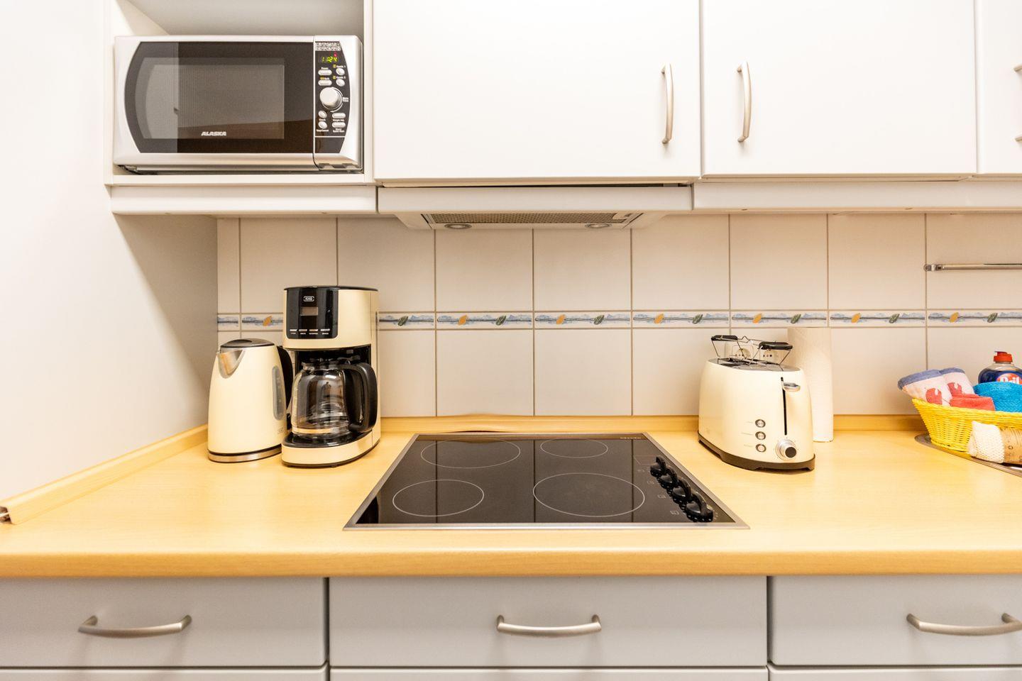 Die Wohnung verfügt über zwei einladende Schlafzimmer, die für erholsame Nächte sorgen. Im geschmackvoll eingerichteten Wohnzimmer mit Sofaecke und Esstisch kannst du entspannen, den Tag ausklingen lassen oder gemeinsam kochen und essen. Die voll ausgestattete, geschlossene Küche mit Herd, Kühlschrank, Geschirrspüler und Mikrowelle macht die Zubereitung deiner Lieblingsgerichte zum Kinderspiel. Genieße deine Mahlzeiten drinnen oder auf der schönen Terrasse, die sich perfekt für entspannte Stunden im Freien eignet.