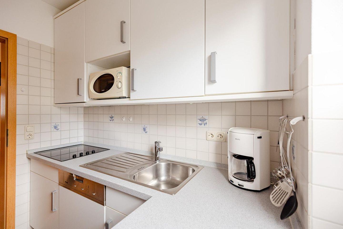 Die geschlossene Küche ist voll ausgestattet mit Herd, Spülmaschine und Mikrowelle, sodass du deine Lieblingsgerichte ganz nach Lust und Laune zubereiten kannst. WLAN und ein Smart-TV sorgen für Unterhaltung, und eine gemeinschaftliche Waschmaschine sowie ein Trockner stehen dir ebenfalls zur Verfügung. Die Wohnung ist eine Nichtraucherunterkunft und mit Rauchmeldern für deine Sicherheit ausgestattet.