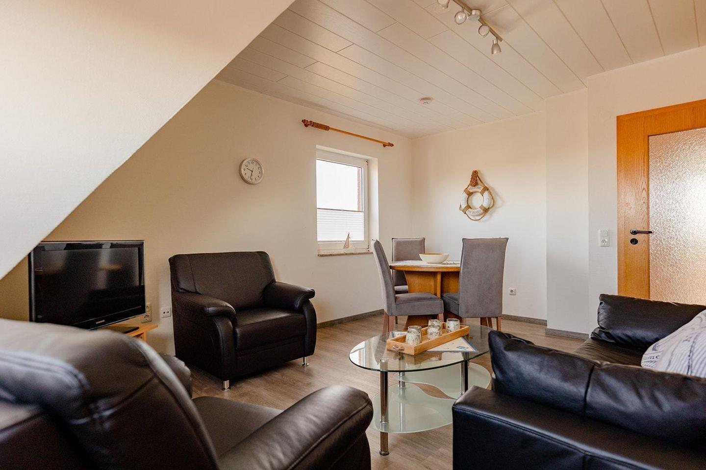 Willkommen im Waldweg App. 4 – deine großzügige Ferienwohnung auf Norderney! Mit 95 m² bietet sie genug Platz für bis zu sechs Personen und ist perfekt für Familien oder Gruppen, die Erholung und Komfort suchen.