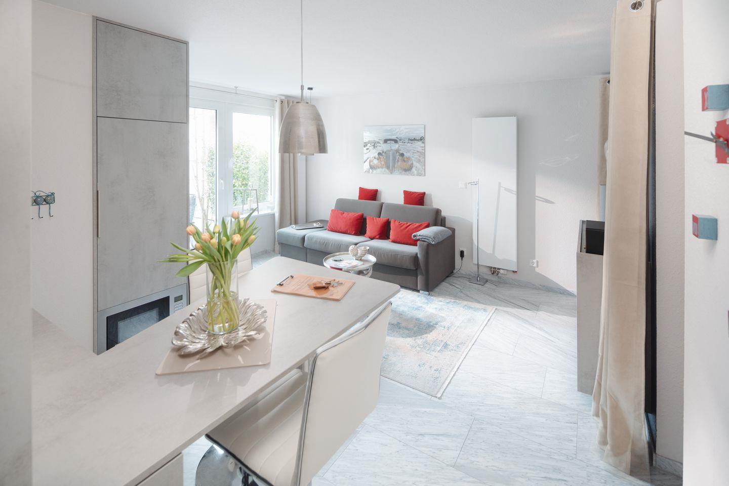 Modernisierte Ferienwohnung Barke 03 auf Norderney, 150 m vom Strand mit Terrasse und voll ausgestatteter Küche.