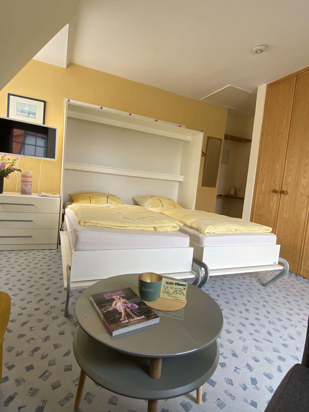 Die Ferienwohnung ist Nichtraucher-freundlich und befindet sich im ersten Stock eines gepflegten Hauses. Sie betreten die Wohnung und finden sich in einem hellen und einladenden Wohnbereich wieder, ausgestattet mit einem gemütlichen Sofa, einem Sessel und einem Esstisch, der Platz für besondere gemeinschaftliche Mahlzeiten bietet. Ein moderner 40 Zoll Fernseher und ein Radio sorgen für Unterhaltung in den Abendstunden, während das WLAN-Internet kostenlos zur Verfügung steht, falls Sie während Ihres Aufenthalts online sein möchten.