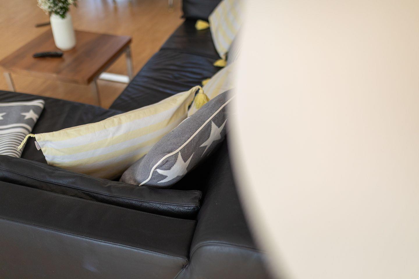 Der Wohn- und Essbereich ist hell, offen und freundlich. Große Fenster lassen viel Licht herein, die Einrichtung ist modern und zugleich gemütlich – ein Ort, an dem man gern zusammenkommt. Hier wird gegessen, gespielt, geplauscht, gechillt – oder einfach mal gar nichts gemacht.