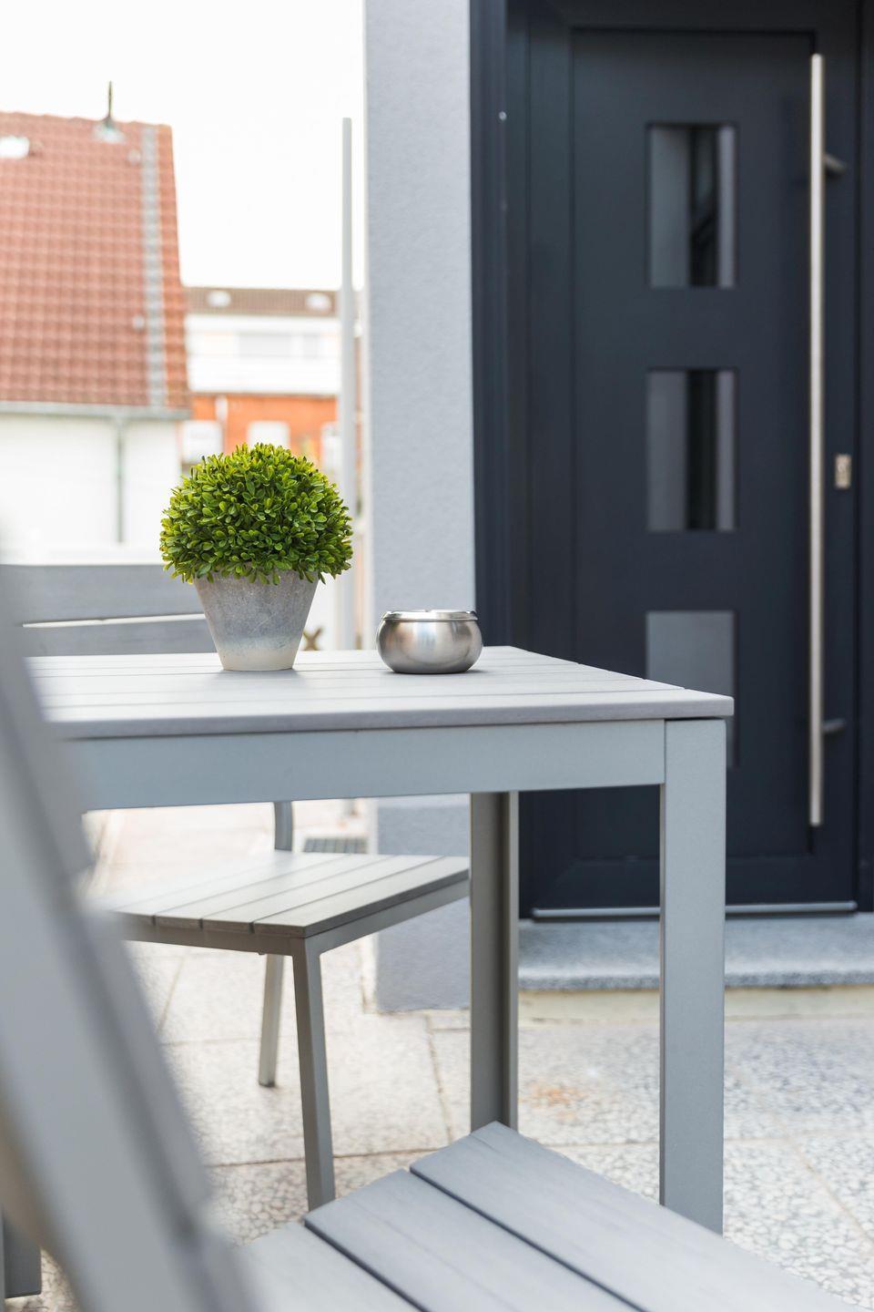 Draußen erwartet euch eine kleine, möblierte Terrasse – euer persönliches Plätzchen an der Inselsonne. Dazu zwei Flachbildfernseher, kostenloses WLAN mit Passwort und im Hausflur Waschmaschine, Trockner sowie Bügelset zur gemeinschaftlichen Nutzung.
