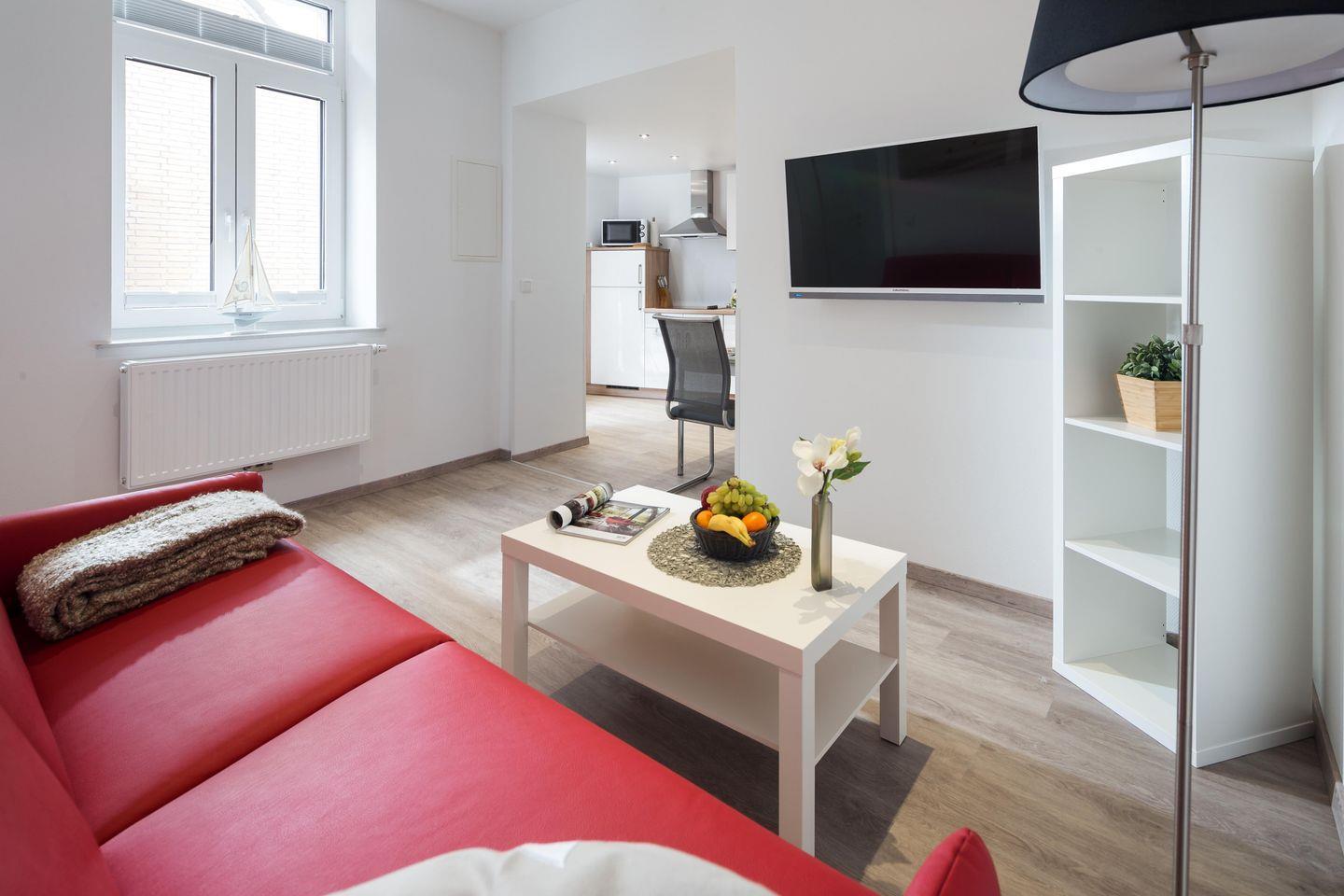 Der helle Wohnraum mit offener Küche ist der perfekte Ort zum Ankommen und Abschalten. Ob auf dem gemütlichen Federkern-Schlafsofa bei einem guten Buch oder gemeinsam beim Kochen – hier fühlt sich Urlaub sofort wie Zuhause an. Die vollausgestattete Küche mit Geschirrspüler, Mikrowelle, 4-Platten-Herd und Kaffeemaschine lässt euch auch kulinarisch unabhängig bleiben.