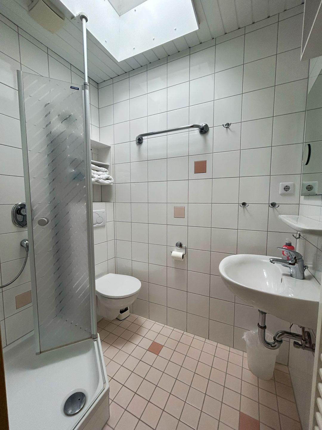 Dieses charmante 1-Zimmer-Apartment bietet einen kombinierten Wohn- und Schlafbereich mit einem 1,40 m breiten Doppelbett, einen Essbereich mit TV sowie eine praktische Kochnische im Eingangsbereich. Das Badezimmer ist mit Dusche und WC ausgestattet.
