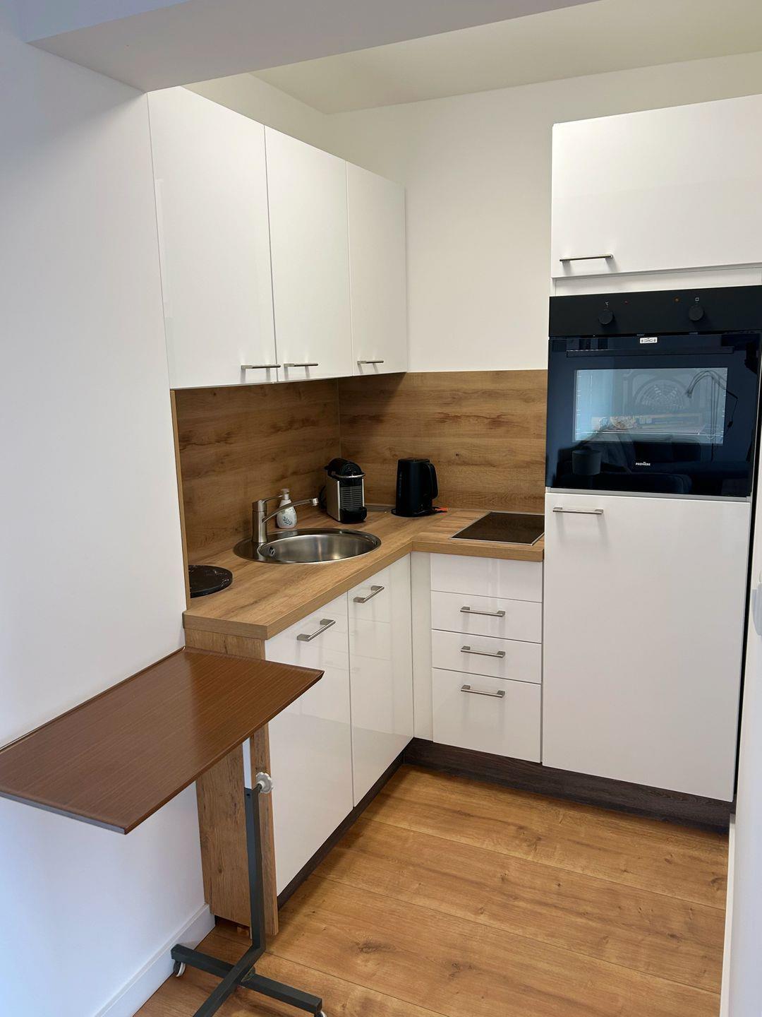 Die Küchenzeile lässt keine Wünsche offen: mit Spülmaschine, Backofen und allem, was Sie für die Zubereitung köstlicher Mahlzeiten benötigen.