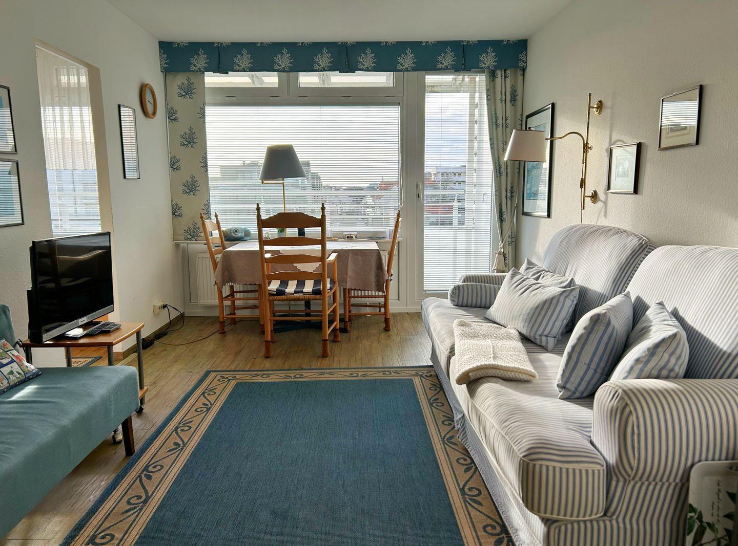 Gemütliches Apartment auf Norderney mit Balkon und seitlichem Meerblick, nur 50 m vom Strand entfernt.