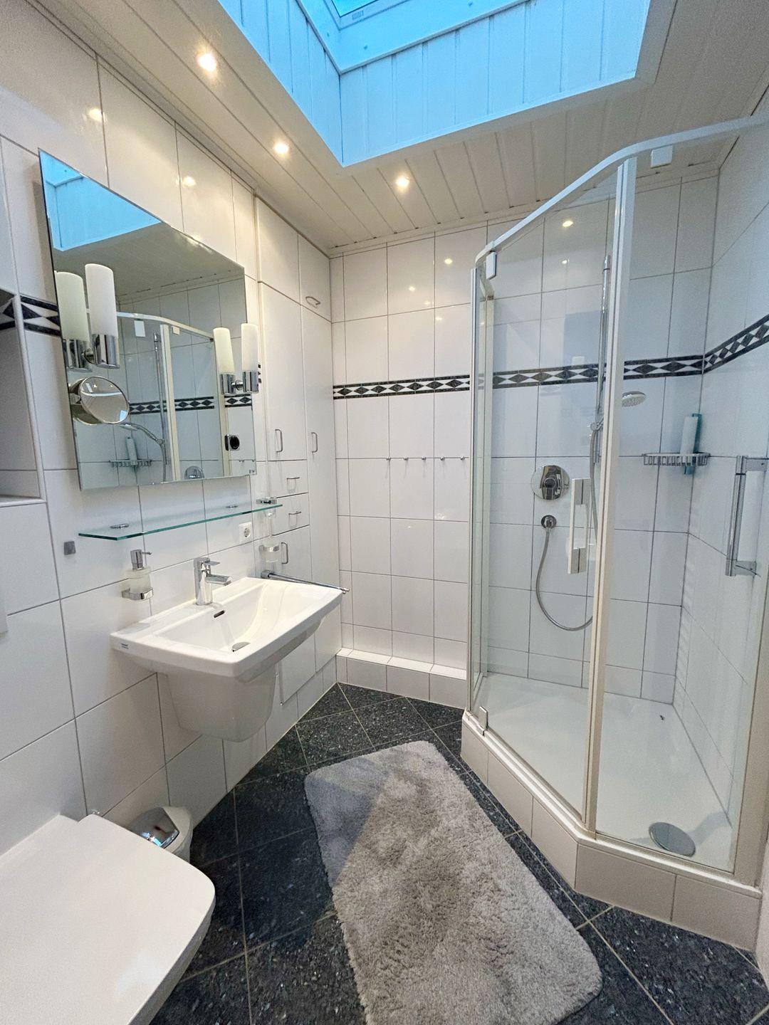 Diese stilvolle Ferienwohnung im Dachgeschoss bietet ein gemütliches Wohnzimmer mit großer Sofalandschaft und TV, eine moderne offene Küche mit Bar sowie ein separates Schlafzimmer mit hochwertigem Schlafsofa und Wintergarten. Der sonnige Balkon lädt zum Entspannen ein.