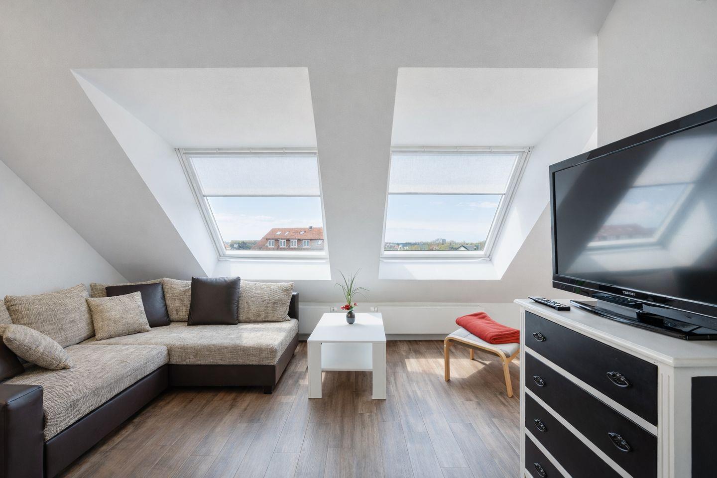 Die Wohnung verfügt über insgesamt 2 Zimmer: ein separates Schlafzimmer und ein Wohnzimmer mit Sofaecke sowie Essbereich. Vinylböden sorgen in Wohn- und Schlafbereich für eine angenehme, pflegeleichte Atmosphäre. Für entspannte Abende stehen Ihnen zwei Fernseher (35–44 Zoll) mit digitalem Kabelanschluss zur Verfügung; außerdem sind Radio, Internet und WLAN vorhanden. Praktische Details wie Garderobe, Schuhschrank, Kommode, Ganzkörperspiegel, Wecker, Bücher, Staubsauger und ein Wäscheständer ergänzen die Ausstattung.