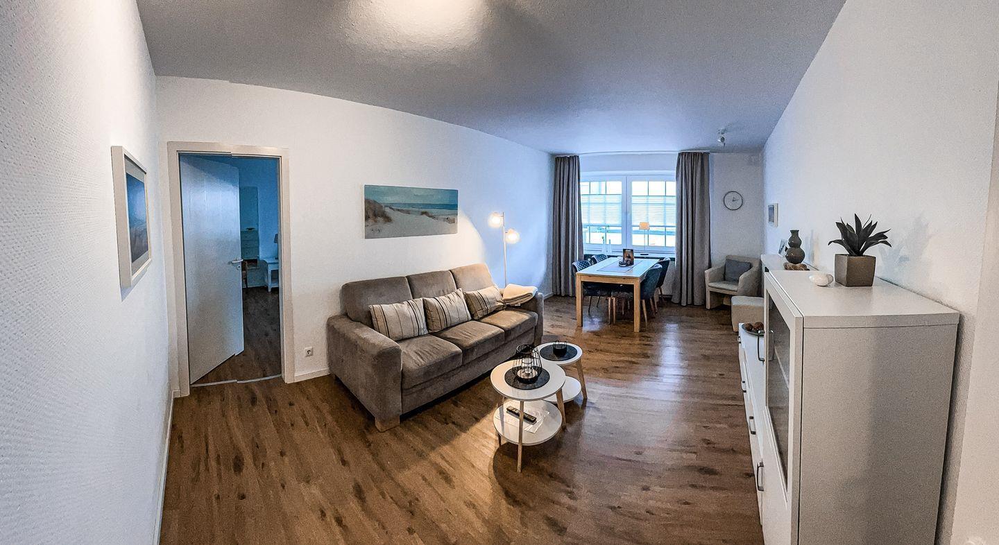 Geräumige Ferienwohnung mit Balkon und zentraler Lage auf Norderney, Strand und Einkaufsmöglichkeiten fußläufig erreichbar.