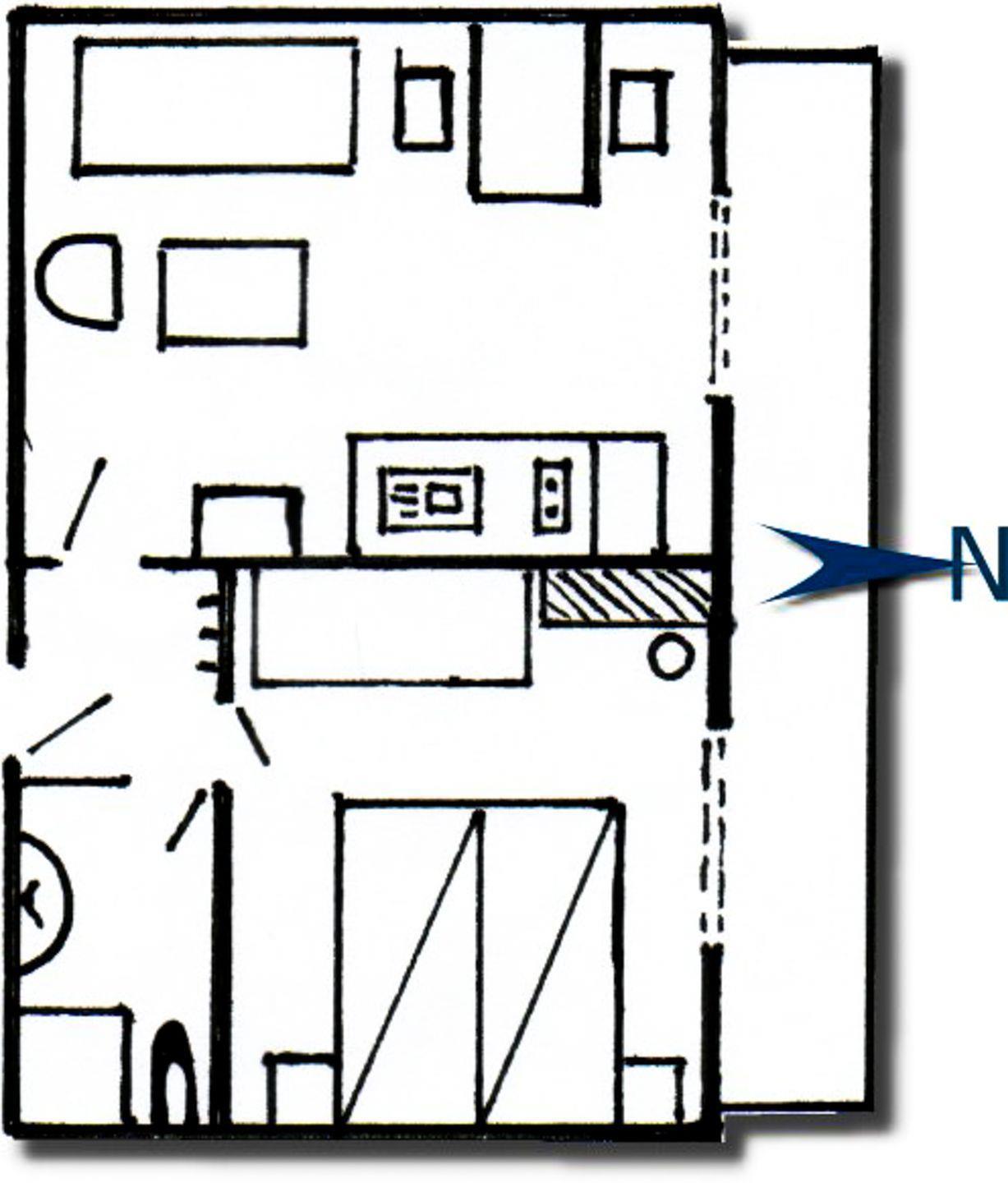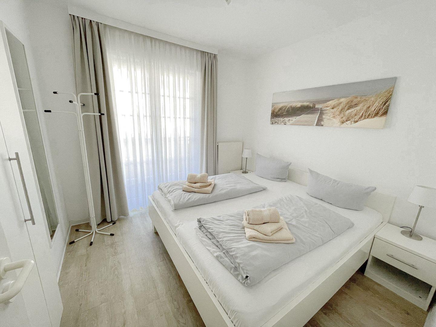die Wohnung im 1. OG liegt mitten im Zentrum nach hinten raus und verfügt über ein separates Schlafzimmer mit Doppelbett, Wohnraum mit voll ausgestatteter Küchenzeile, Essecke und Bad mit Dusche/WC. Den Balkon können Sie sowohl vom Schlafzimmer als auch vom Wohnzimmer aus betreten. Bäcker, Lebensmittelgeschäfte und die Strandpromenade sind um zwei Straßenecken fußläufig zu erreichen.
