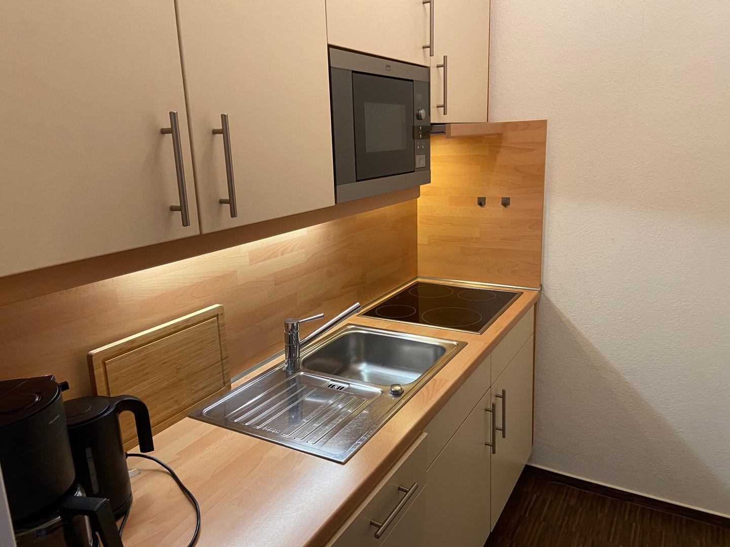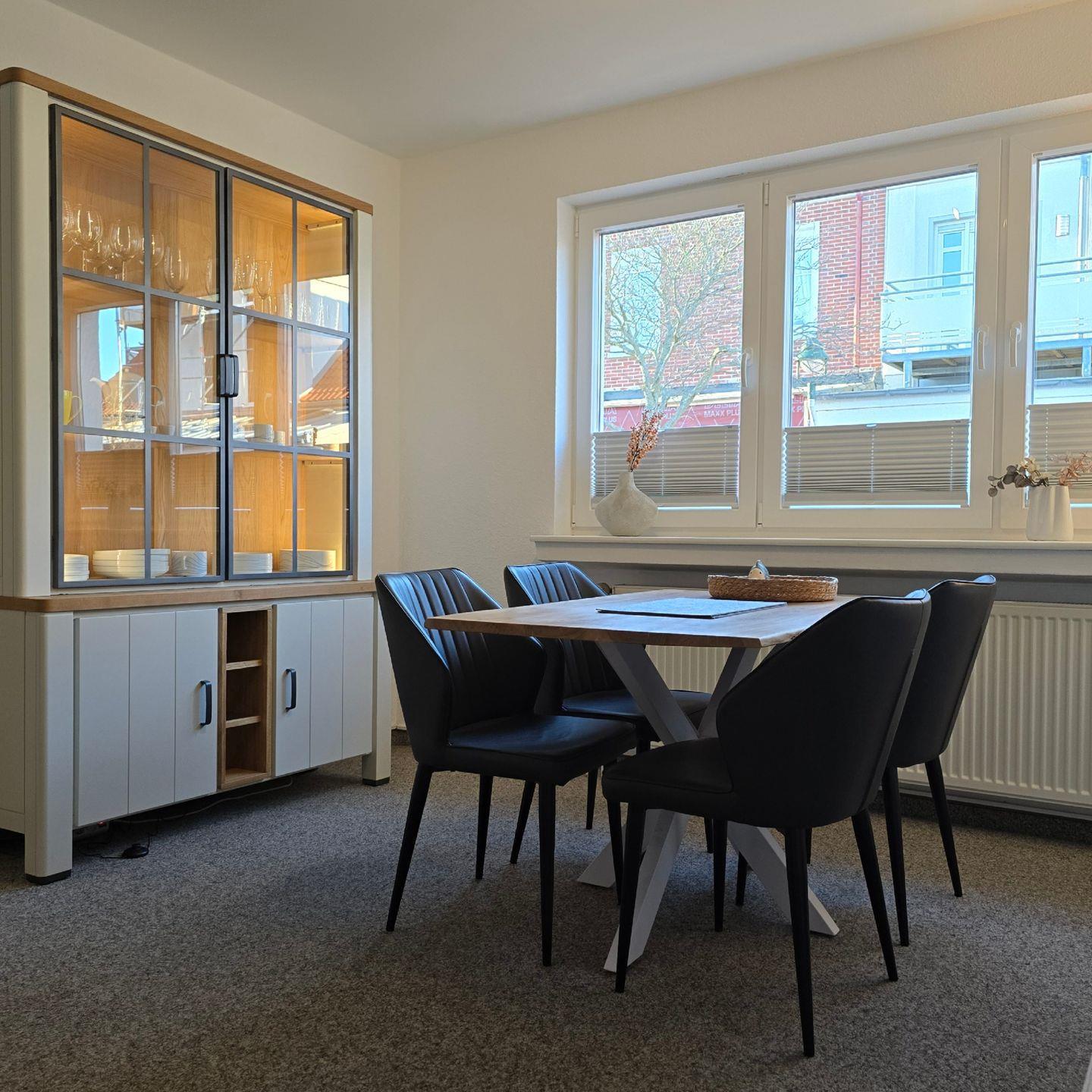 Charmante Ferienwohnung auf Norderney mit Strandnähe, moderner Küche und Gemeinschaftsterrasse für erholsame Tage am Meer.