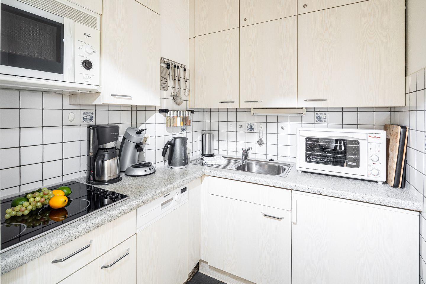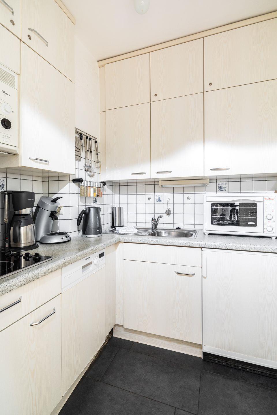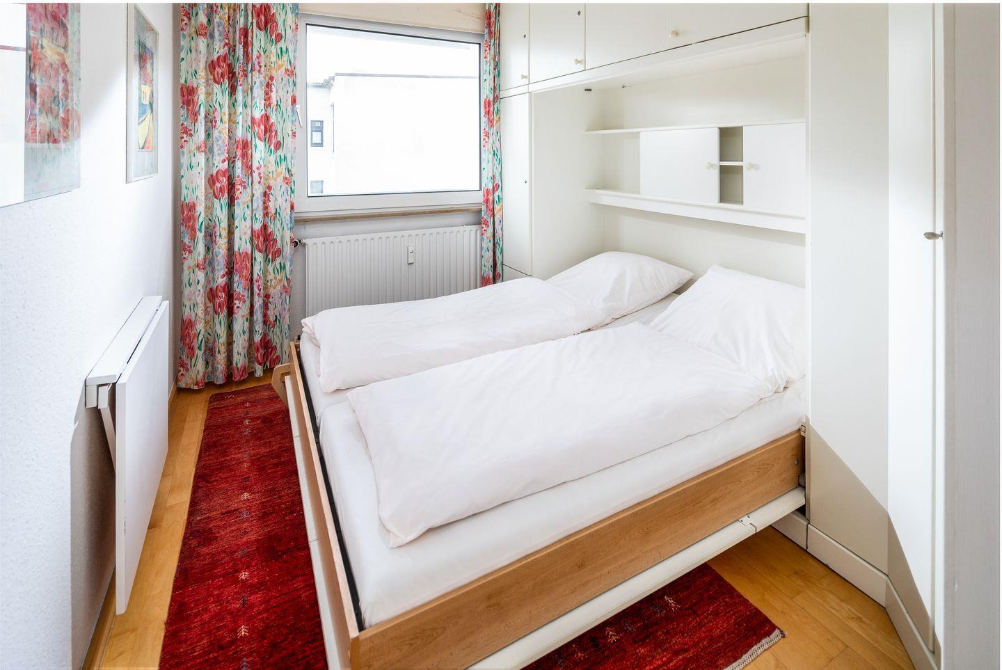das Appartement verfügt über ein separates Schlafzimmer mit Doppelbett, Diele und separate Kochküche. Über den Wohn-Schlafraum (Schlafsofa für 1 Person) mit Essecke für 3 Personen haben Sie Zugang zum Balkon. Der Südbalkon liegt in Richtung Süden mit einem hübschen Blick über die Dächer. Fahrstuhl vorhanden. Bäcker, Lebensmittelgeschäfte und die Strandpromenade sind die Straße runter fußläufig zu erreichen.