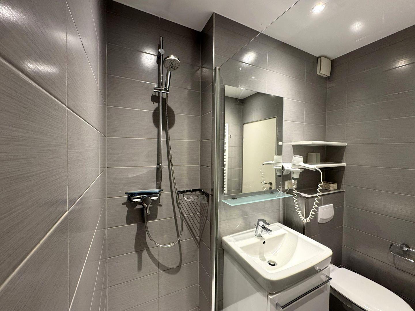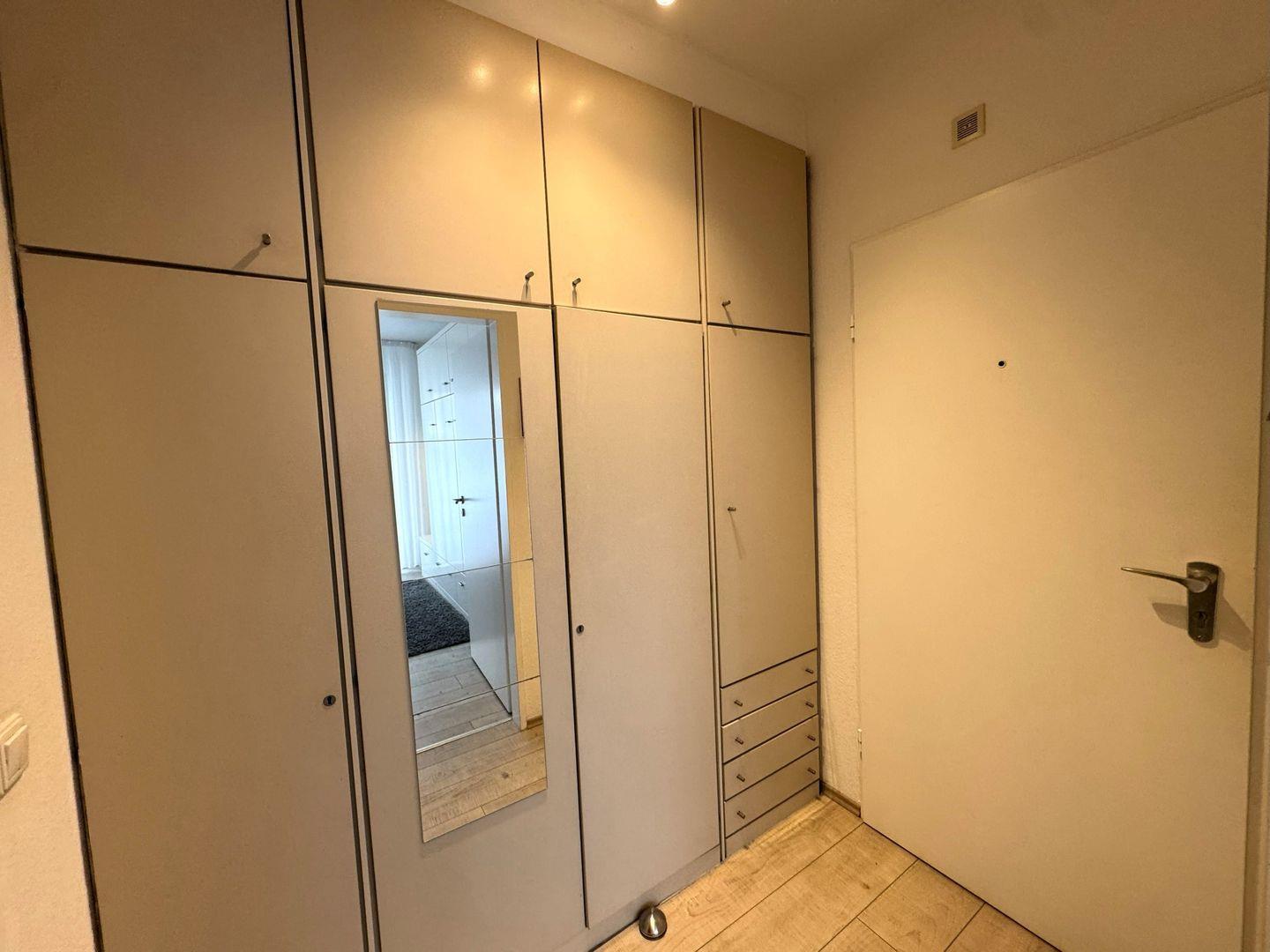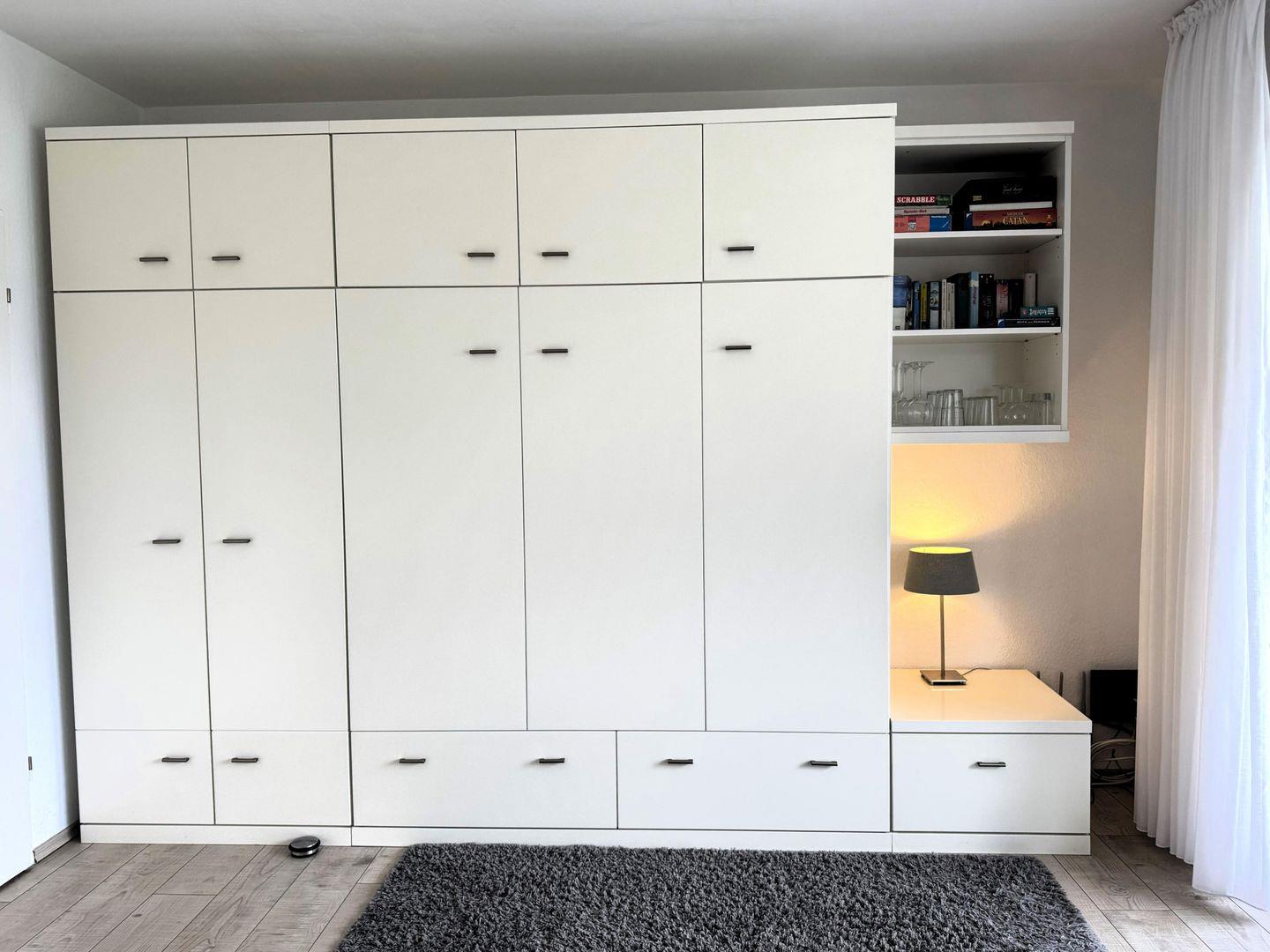 Das moderne Badezimmer überzeugt mit einer ebenerdigen Dusche und klarer, zeitgemäßer Gestaltung. Zudem bietet die Wohnung viel Stauraum für einen angenehmen Aufenthalt auch über mehrere Tage.