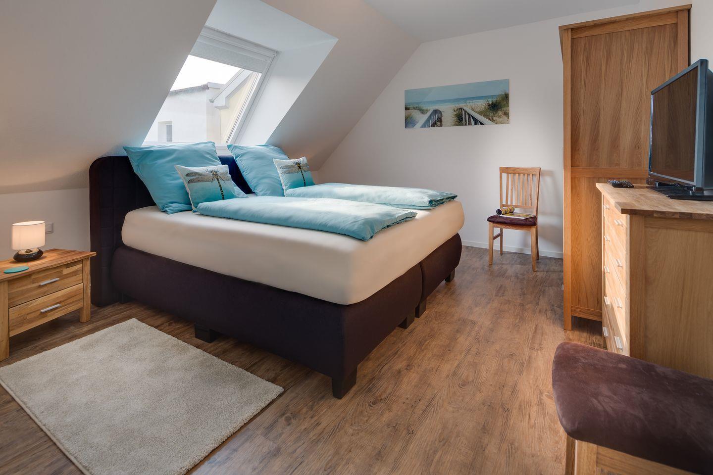 das exklusive Appartement im 2. OG verfügt über 2 separate Schlafzimmer (Doppelbett /2 Einzelbetten) mit jeweils einem Digital-TV. Der geschmackvoll eingerichtete Wohnraum mit kleinem anschließenden Balkon bietet Platz für eine Sofaecke und eine Essecke. Die Küchenzeile ist komplett ausgestattet. Von der Backform bis zur Kaffeemaschine mit Mahlwerk ist alles vorhanden. Modernes Tageslichtbad mit Dusche/WC. Bäcker, Lebensmittelgeschäfte und die Strandpromenade sind um die Ecke auf der Strandstraße fußläufig leicht zu erreichen.