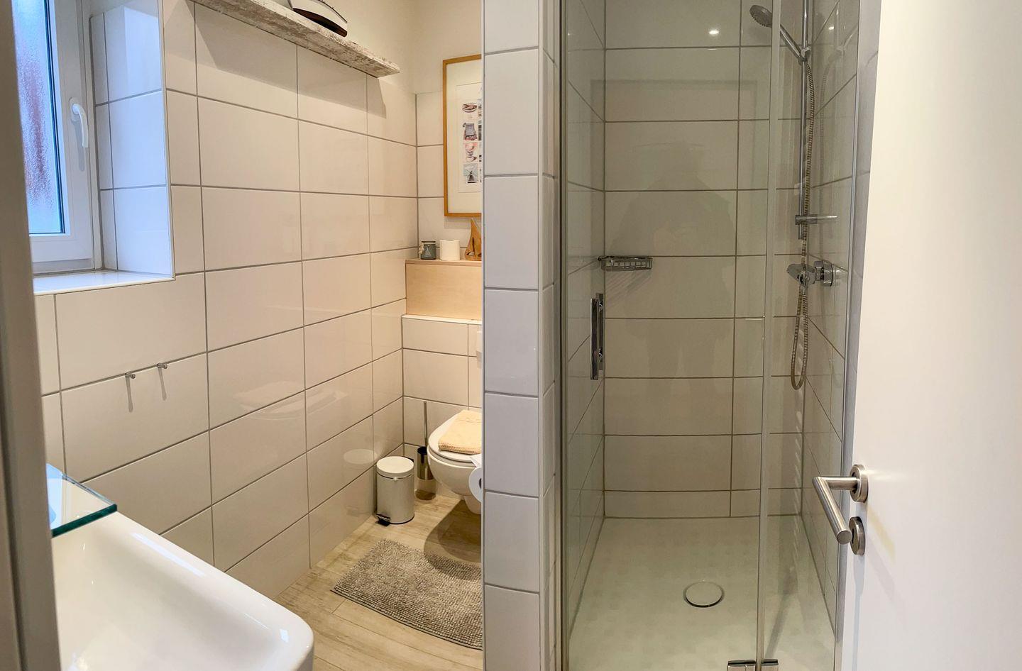 das Appartement liegt nach hinten raus im 1. OG und verfügt über ein separates Schlafzimmer mit Doppelbett, Diele, Wohn-Schlafraum (Schlafsofa mindestens 1,60m breit) und Tageslichtbad mit Dusche/WC. Die Küchenzeile befindet sich in einer kleinen Nische mit dem Essplatz vor dem Fenster. Bäcker, Lebensmittelgeschäfte und die Strandpromenade sind die Straße rauf oder runter fußläufig zu erreichen.